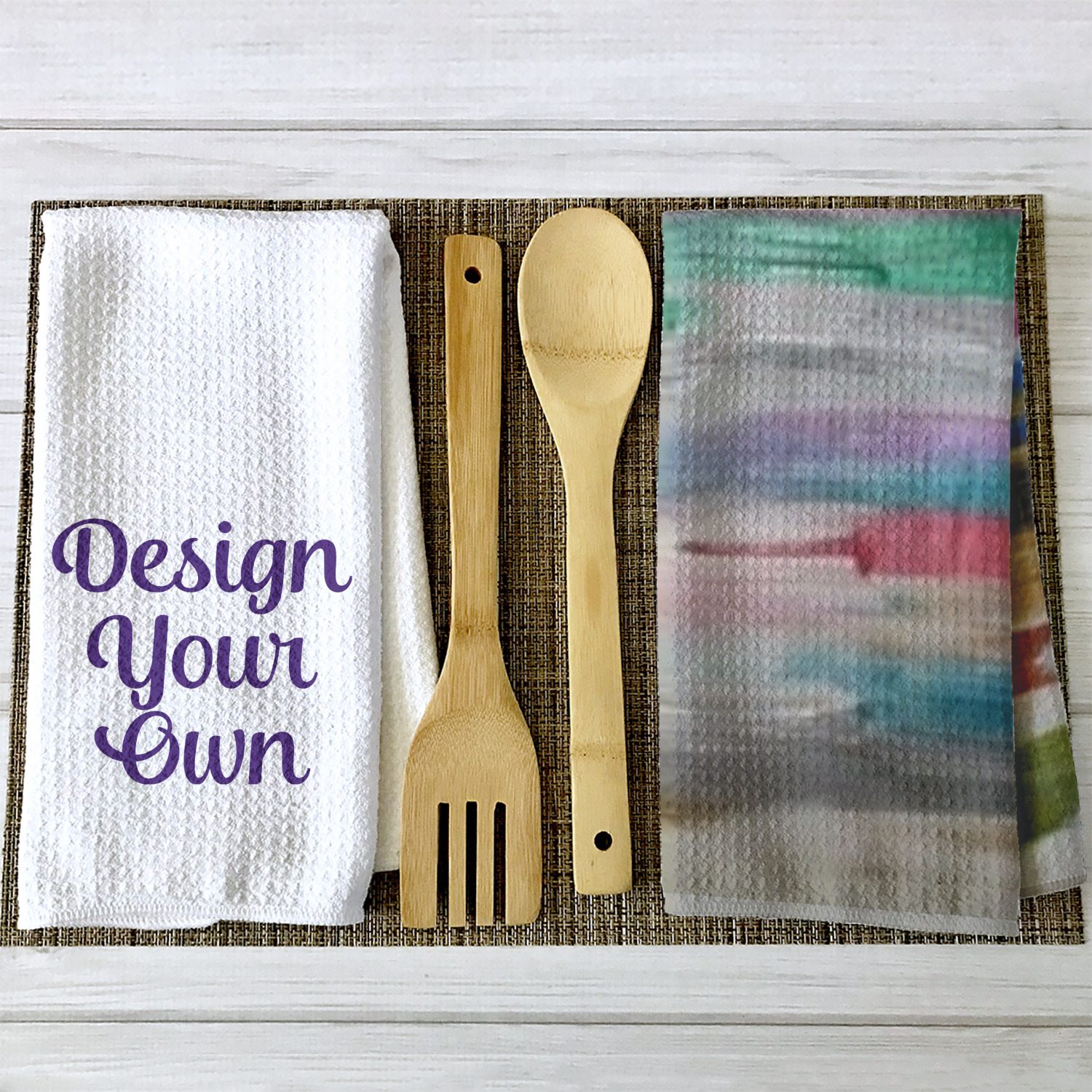 Some say the kitchen is the heart of the home, so why not adorn it with our unique customizable waffle weave kitchen towels and give it life! Print your personality onto a kitchen towel and choose between our two print styles - partial or full color print!