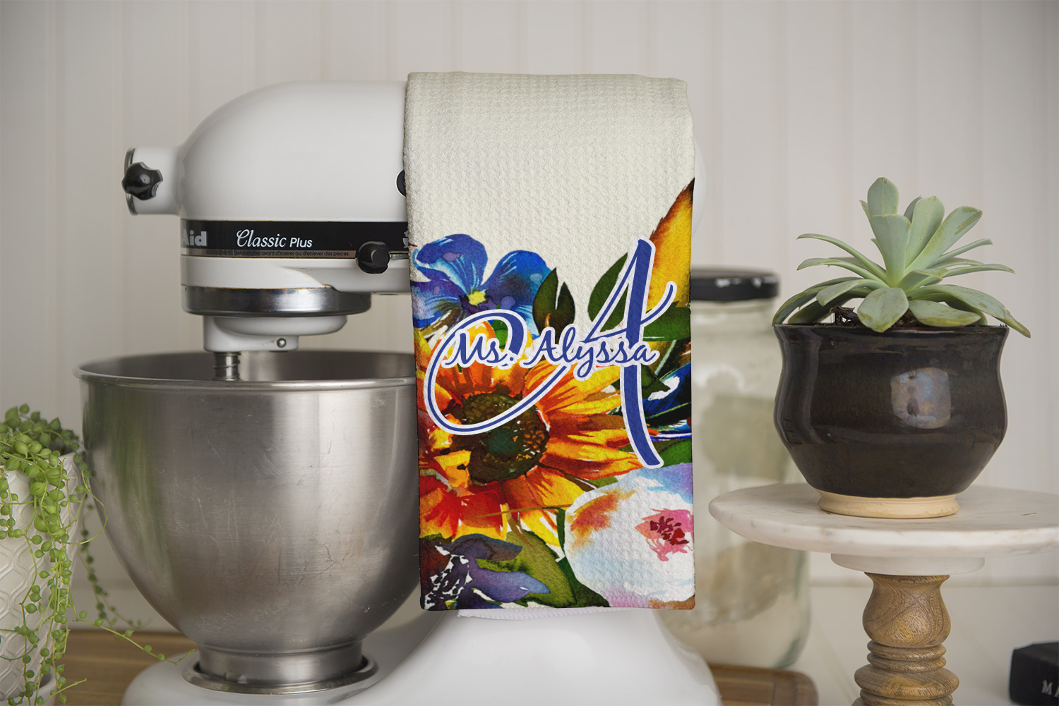 Each waffle weave kitchen towel is approximately 16 x 24 inches with your design printed on one side and the back is white.