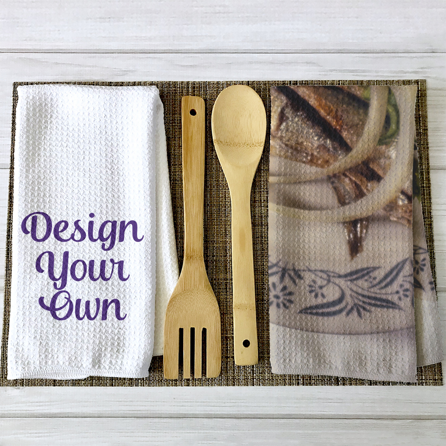 Some say the kitchen is the heart of the home, so why not adorn it with our unique customizable waffle weave kitchen towels and give it life! Print your personality onto a kitchen towel and choose between our two print styles - partial or full color print!