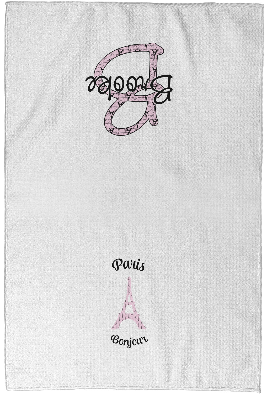 Each waffle weave kitchen towel is approximately 16 x 24 inches with your design printed on one side and the back is white.