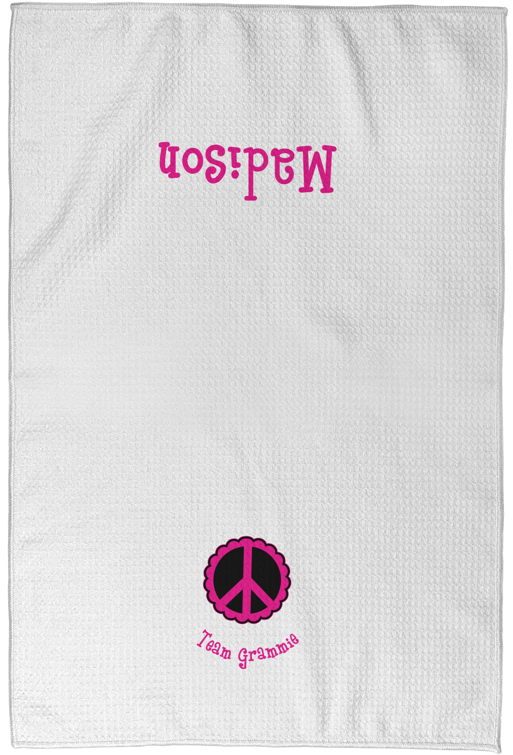 Each waffle weave kitchen towel is approximately 16 x 24 inches with your design printed on one side and the back is white.