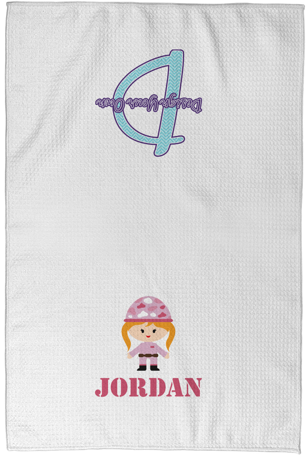 Each waffle weave kitchen towel is approximately 16 x 24 inches with your design printed on one side and the back is white.