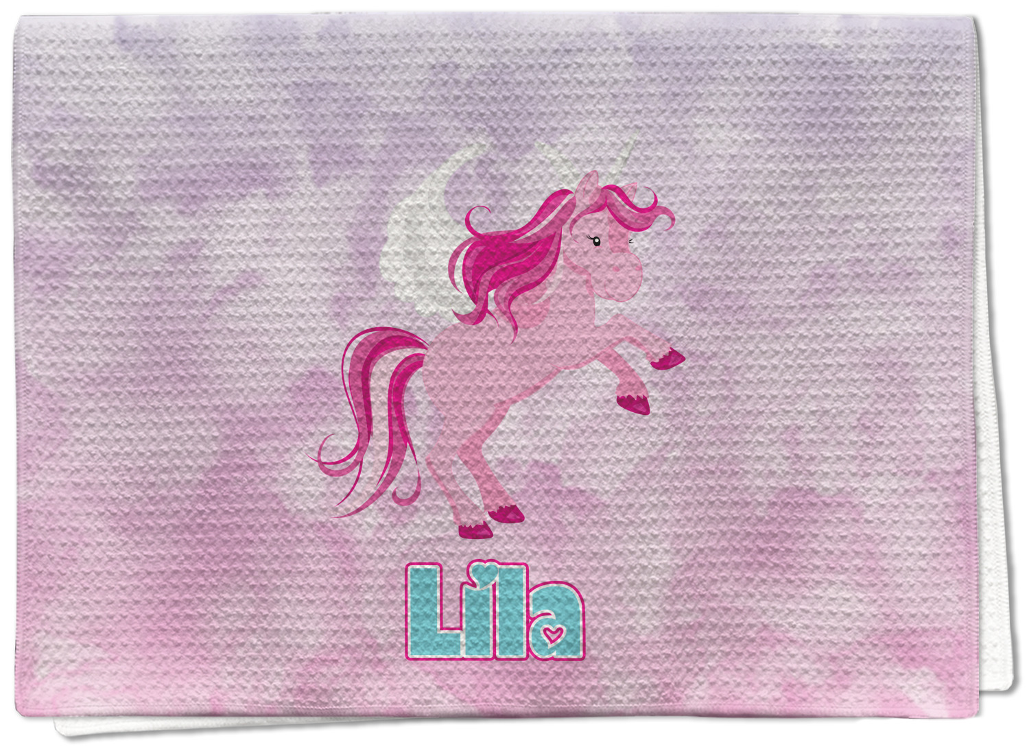 Each waffle weave kitchen towel is approximately 16 x 24 inches with your design printed on one side and the back is white.