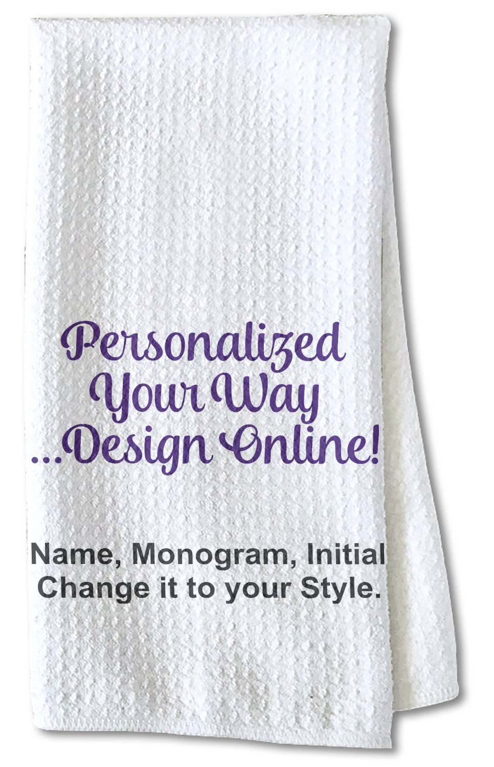 Each waffle weave kitchen towel is approximately 16 x 24 inches with your design printed on one side and the back is white.