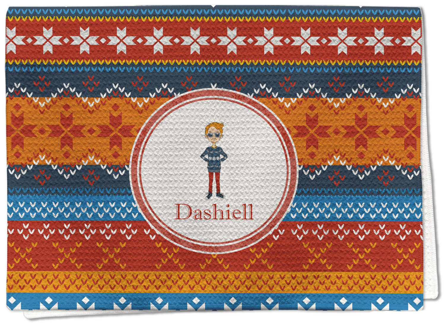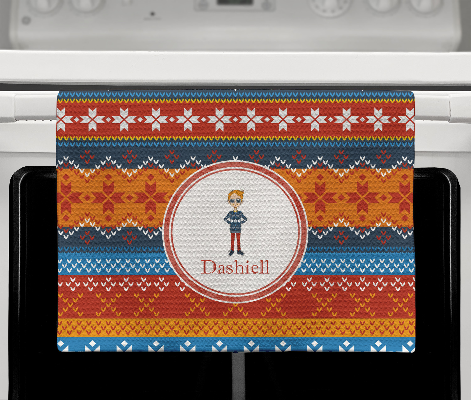Hipster Winter Design on Custom Kitchen Towel - Waffle Weave