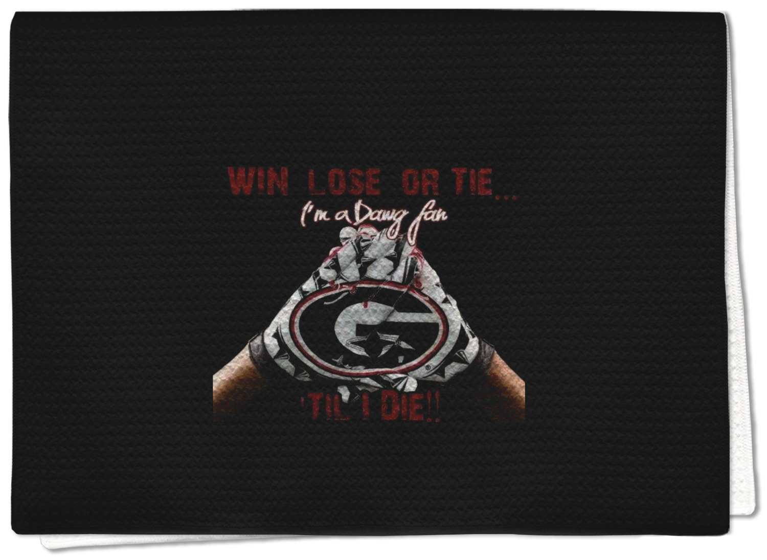Each waffle weave kitchen towel is approximately 16 x 24 inches with your design printed on one side and the back is white.
