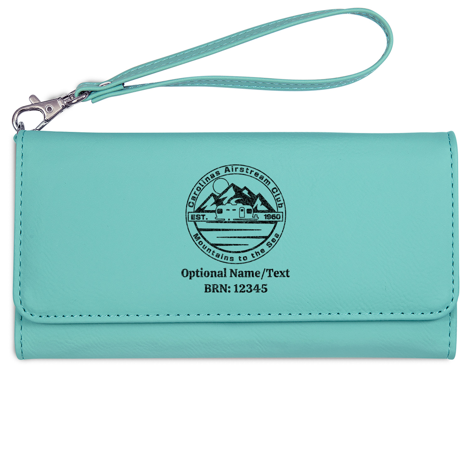 These personalized ladies leather wallets are available in 2 colors - rawhide / cognac and teal.