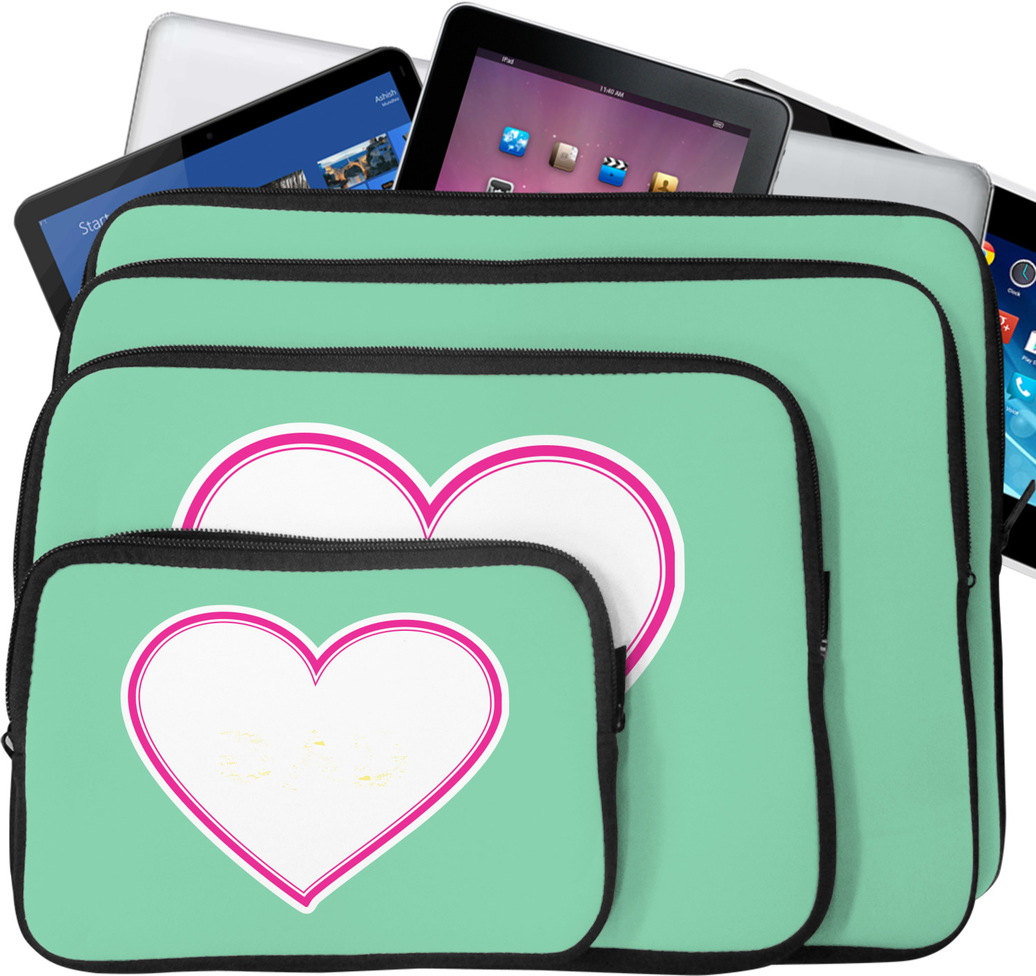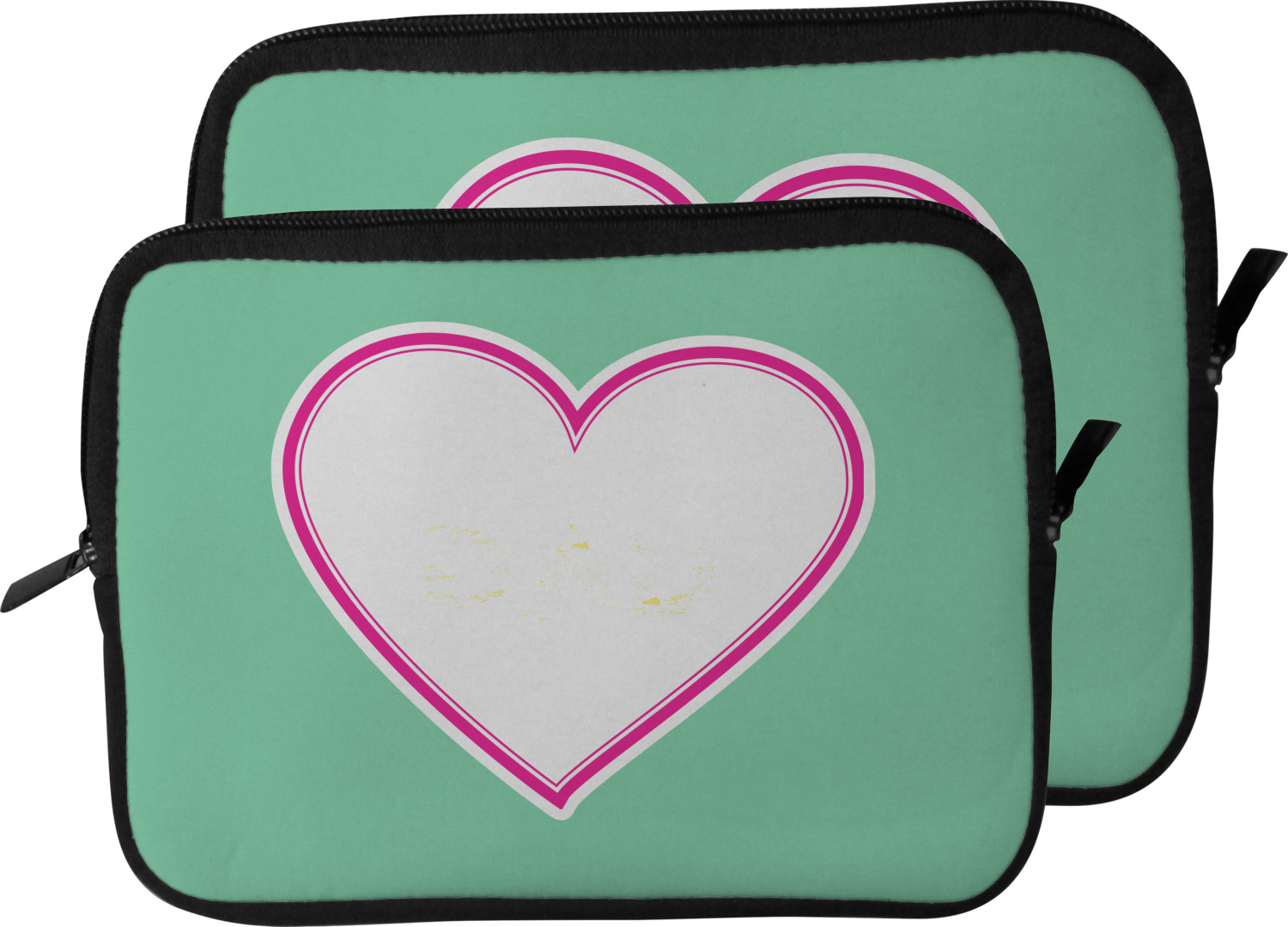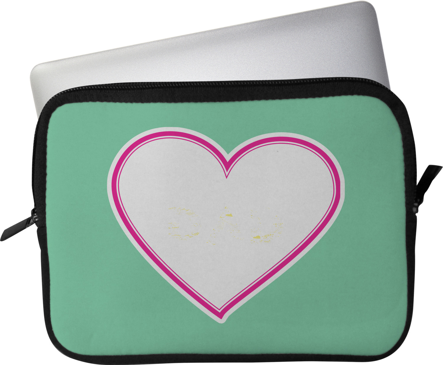 These laptop covers are built from a water-resistant, cushioned neoprene. We display your personalized design on the front of this computer sleeve, while the other sides are simply the black color of the neoprene fabric. A zipper lines the top half of this case, for direct access to your device. For added protection, the interior of this neoprene laptop sleeve is lined with a padded, minky-like material.