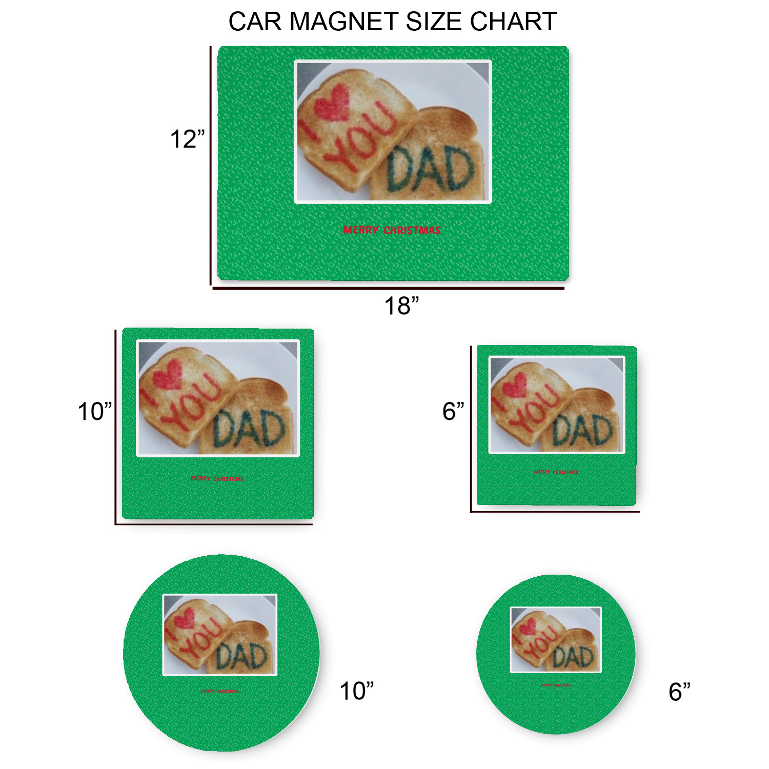 Your personalized large car magnet measures at 18 inches wide by 12 inches tall. They are 1 millimeter thick, which is considered, within the industry, as the ideal thickness for automobile magnets. The magnetic car decals will adhere to any smooth, ferrous metal surface of your cars body, such as the trunk door or a side panel.