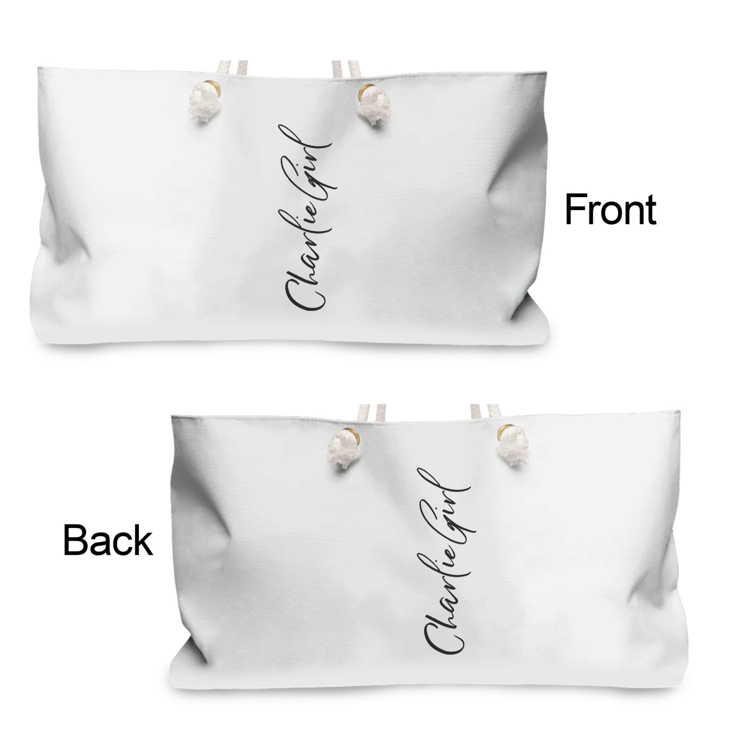 These weekender totes can be customized front and back. The totes are full all over print - so the choice of how background are endless - from beautiful floral or leaf patterns to geometrics or some classic Van Gogh artwork - the possibilities are endless. The totes can also be decorated with photos and logos.
