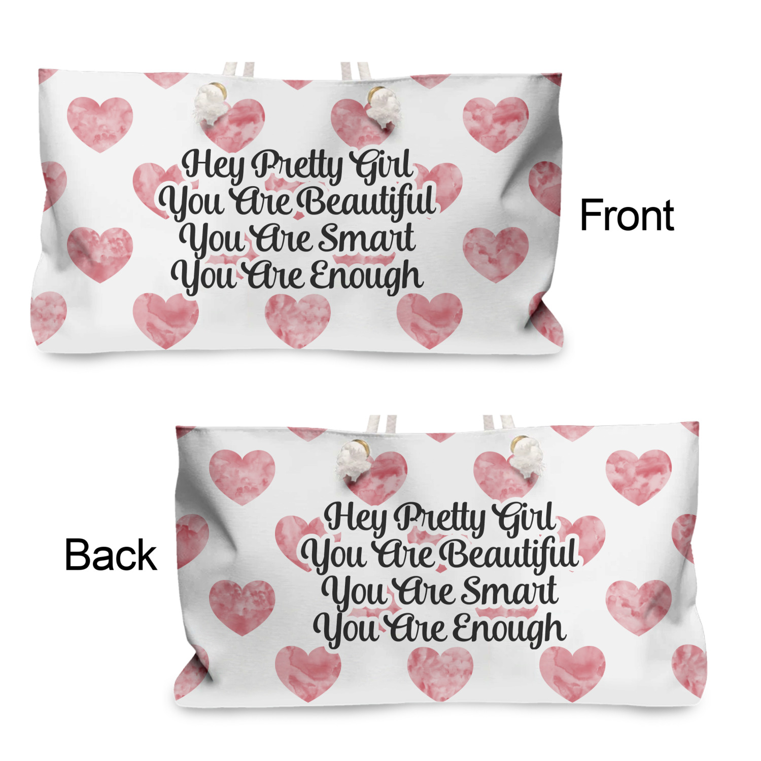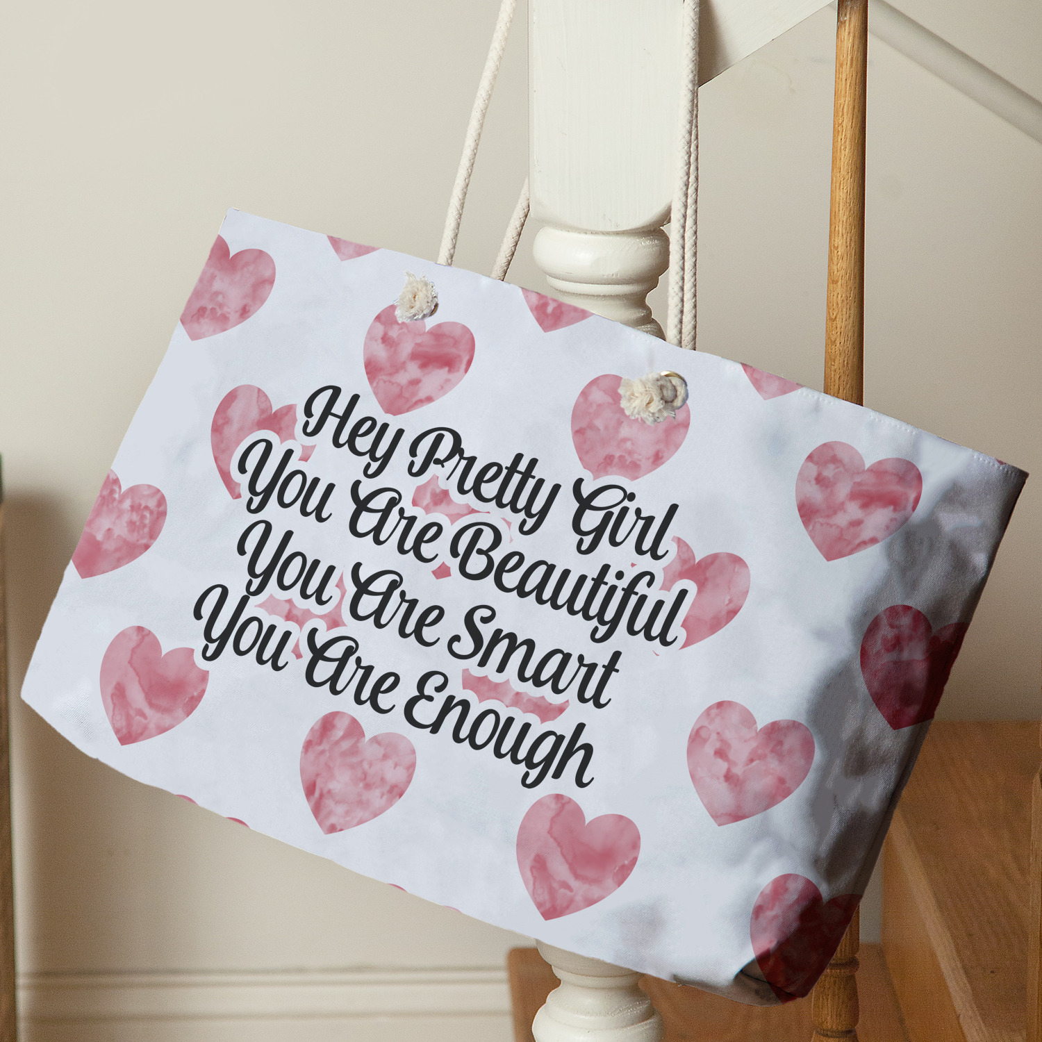 These weekender totes can be customized front and back. The totes are full all over print - so the choice of how background are endless - from beautiful floral or leaf patterns to geometrics or some classic Van Gogh artwork - the possibilities are endless. The totes can also be decorated with photos and logos.
