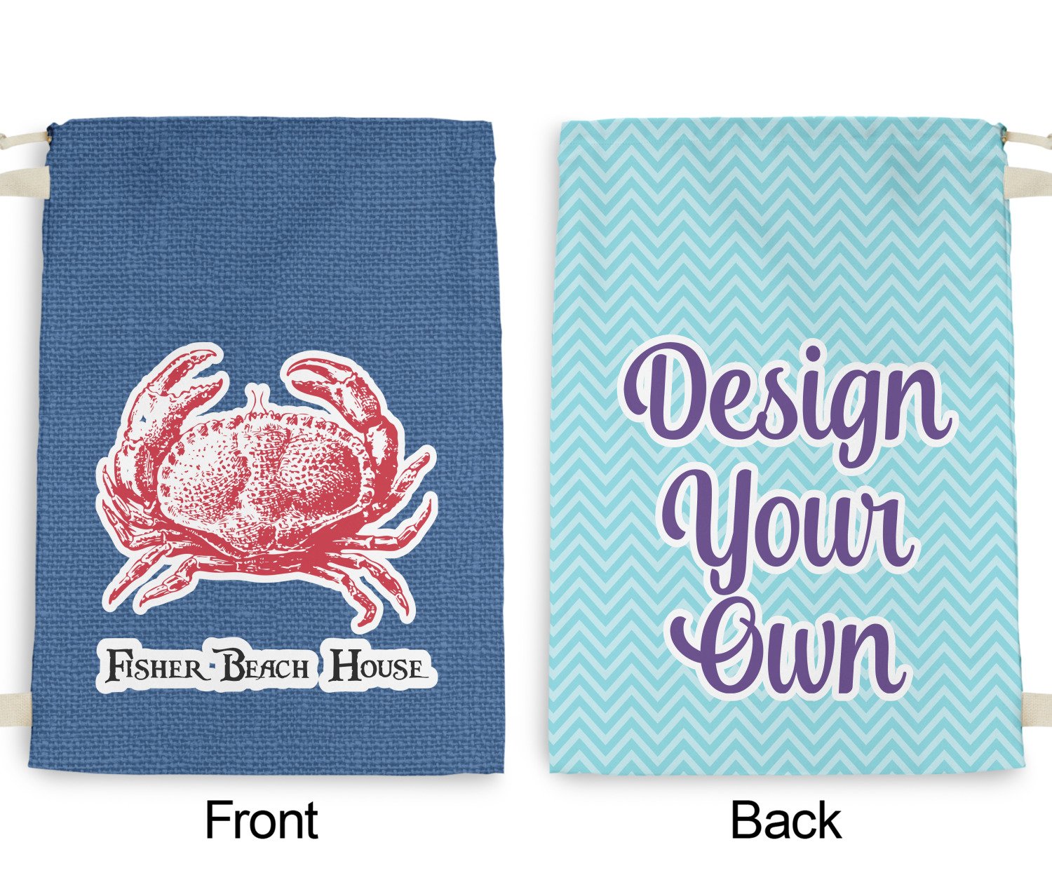 Carry your laundry in style with these customized laundry bags. Available in two sizes, featuring a natural colored woven strap and a cinch cord, these bags hold a lot of clothes or anything else you want to fit in them.