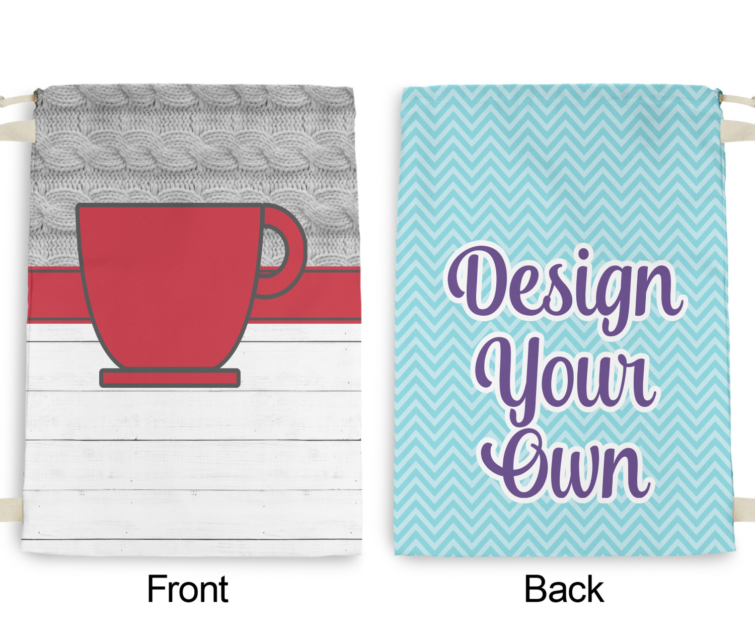 Carry your laundry in style with these customized laundry bags. Available in two sizes, featuring a natural colored woven strap and a cinch cord, these bags hold a lot of clothes or anything else you want to fit in them.