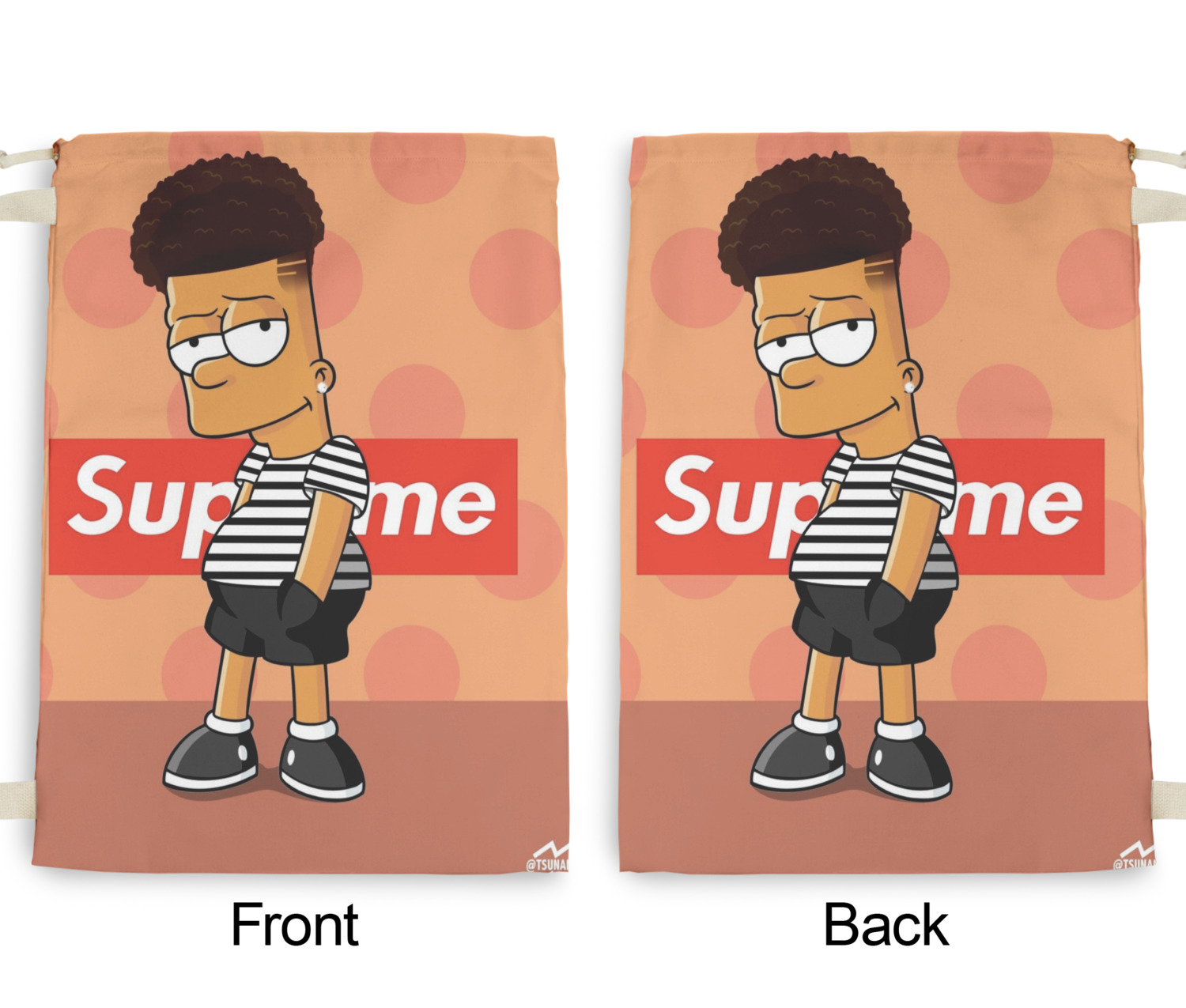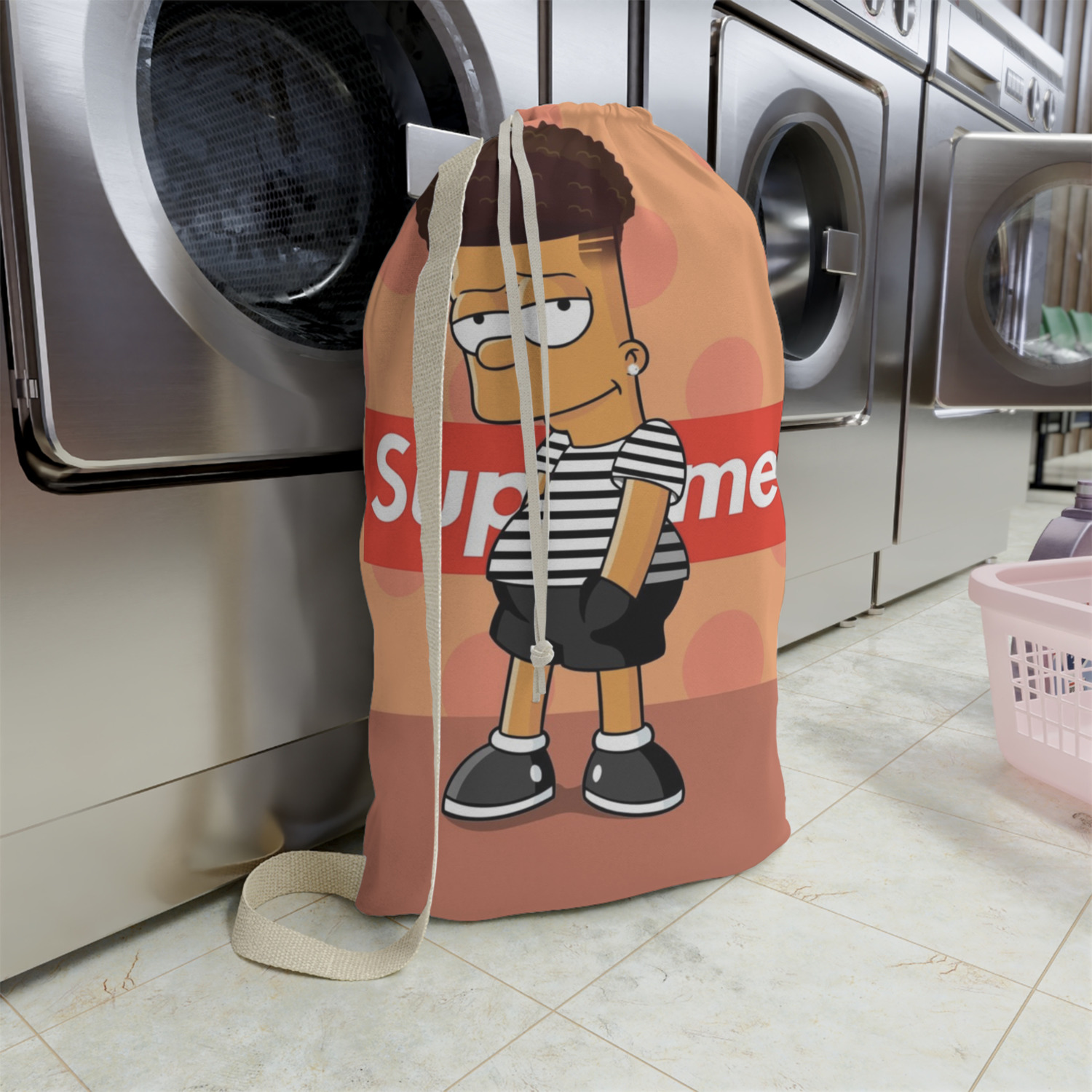 Our laundry bags are handmade in the USA; The fabric is printed using dye sublimation. The fabric is then cut and the grommets are added for the drawstring closure. The laundry bag is then sewn and the drawstring is fed through and knotted to create the cinch closure.