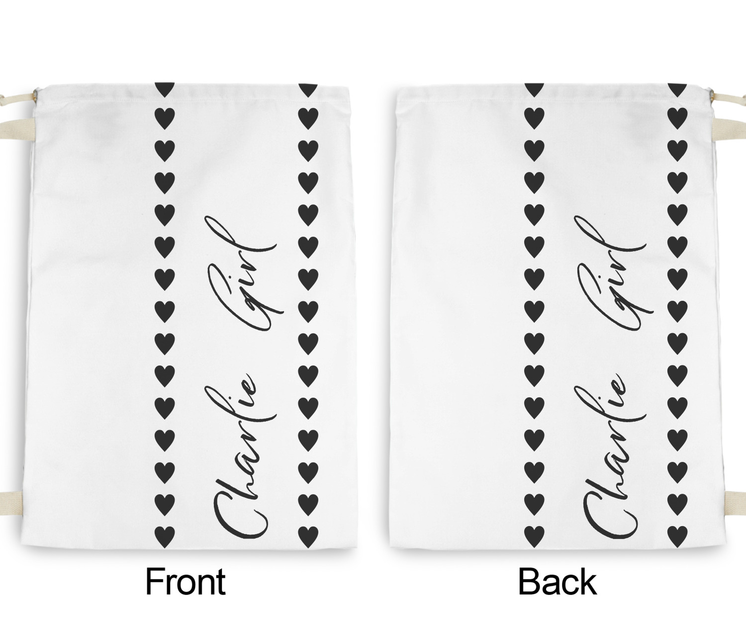 Carry your laundry in style with these customized laundry bags. Available in two sizes, featuring a natural colored woven strap and a cinch cord, these bags hold a lot of clothes or anything else you want to fit in them.