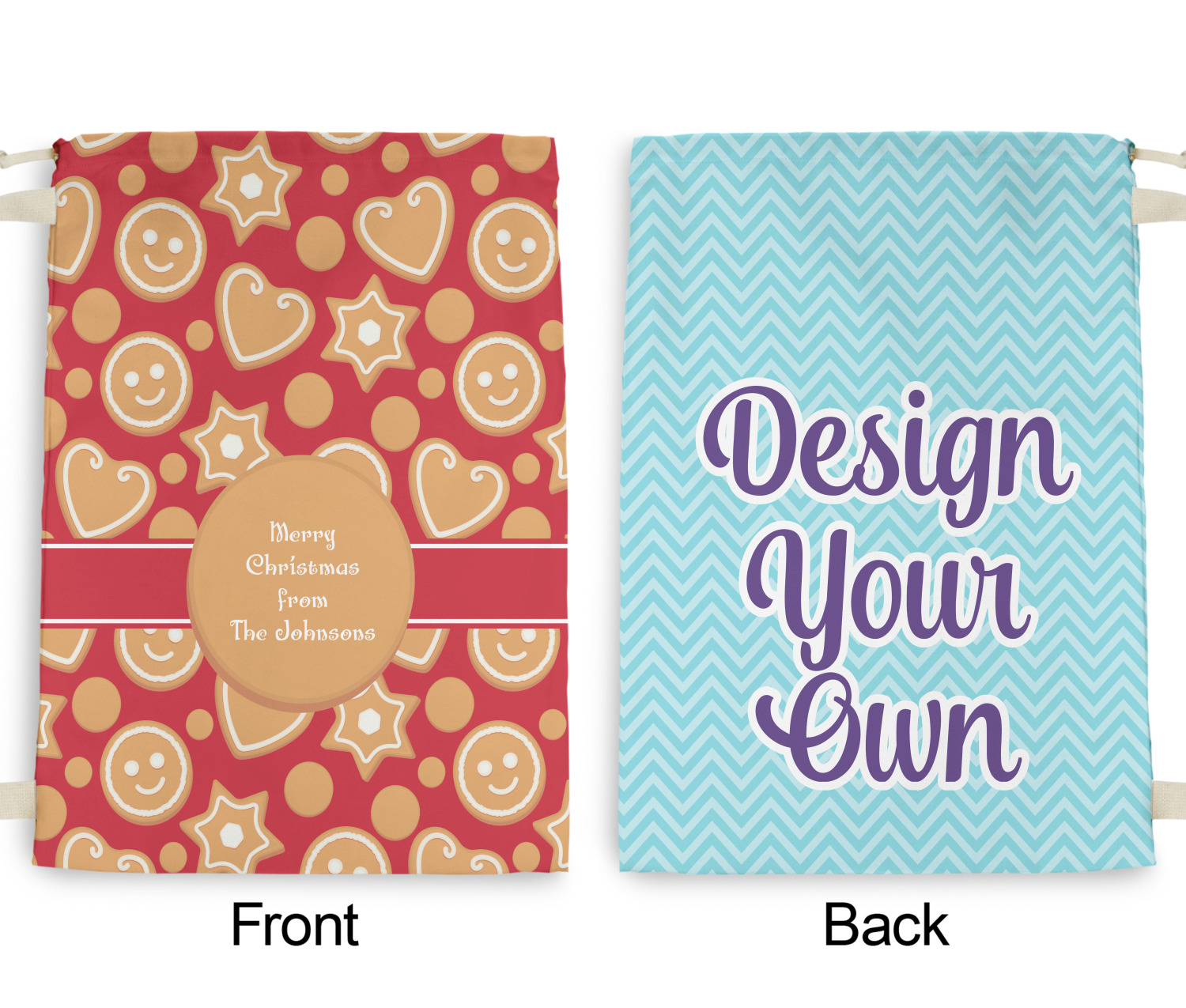 Carry your laundry in style with these customized laundry bags. Available in two sizes, featuring a natural colored woven strap and a cinch cord, these bags hold a lot of clothes or anything else you want to fit in them.