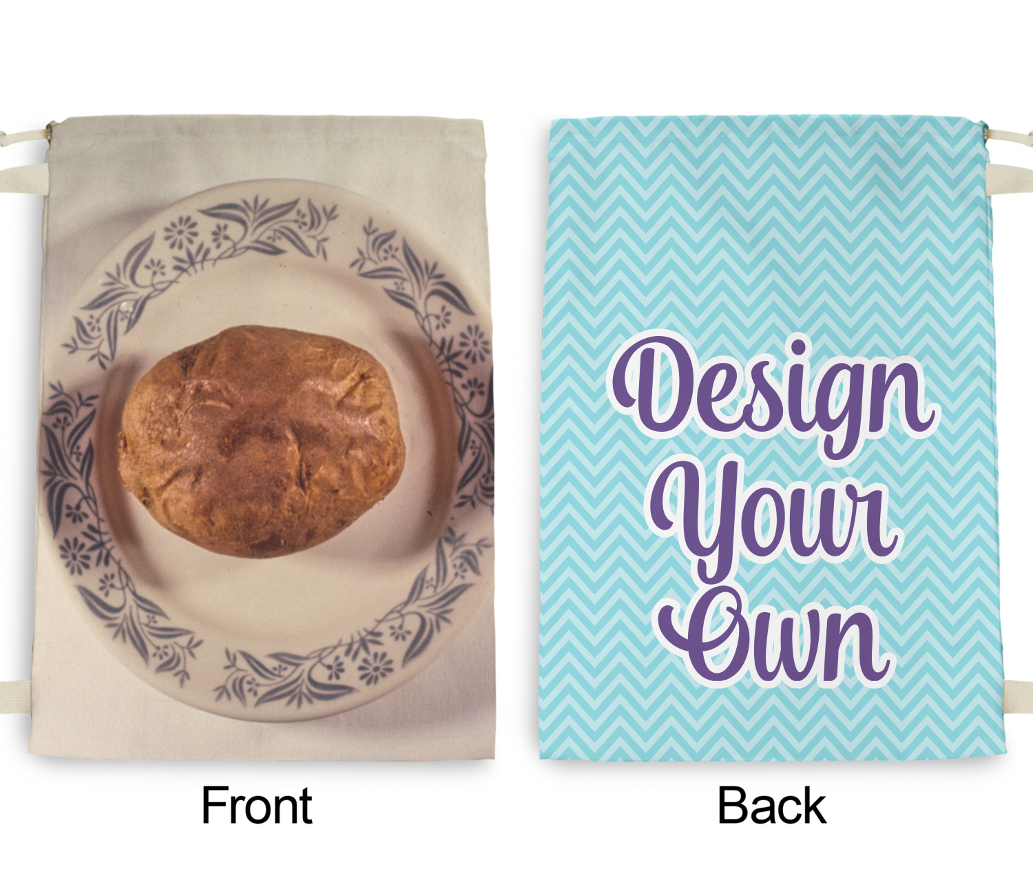 Carry your laundry in style with these customized laundry bags. Available in two sizes, featuring a natural colored woven strap and a cinch cord, these bags hold a lot of clothes or anything else you want to fit in them.