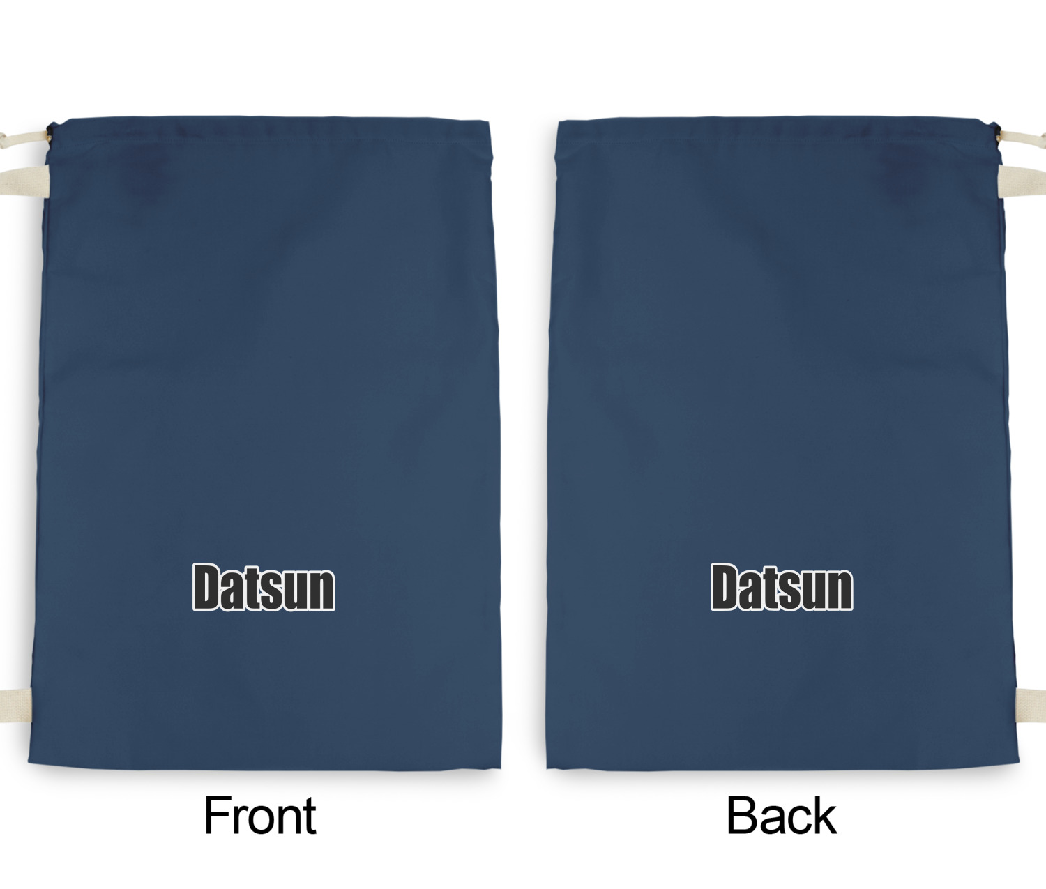 Carry your laundry in style with these customized laundry bags. Available in two sizes, featuring a natural colored woven strap and a cinch cord, these bags hold a lot of clothes or anything else you want to fit in them.
