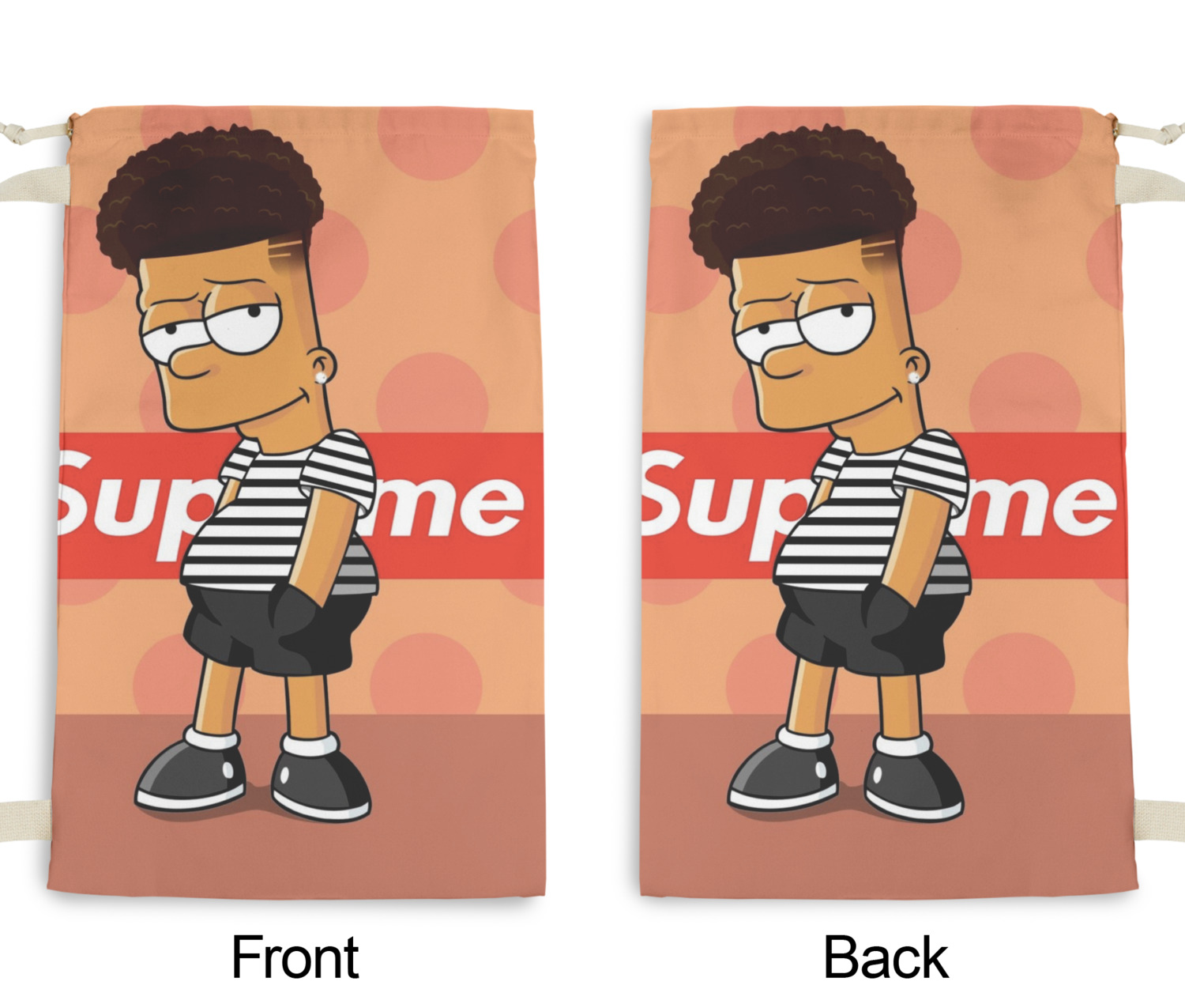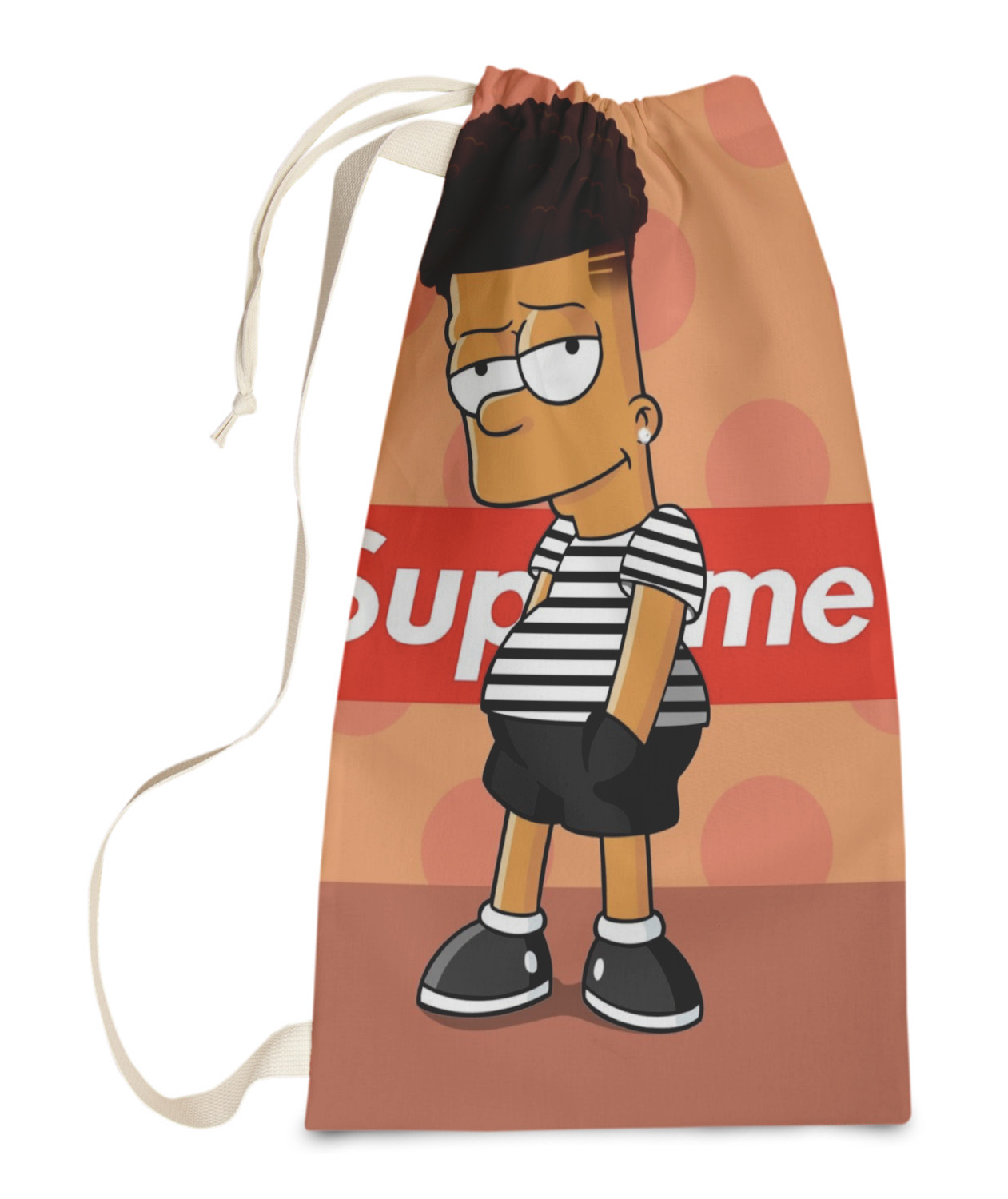 Our laundry bags are handmade in the USA; The fabric is printed using dye sublimation. The fabric is then cut and the grommets are added for the drawstring closure. The laundry bag is then sewn and the drawstring is fed through and knotted to create the cinch closure.