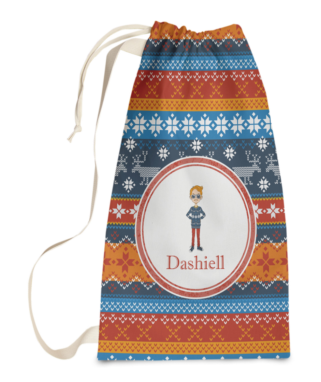 Carry your laundry in style with these customized laundry bags. Available in two sizes, featuring a natural colored woven strap and a cinch cord, these bags hold a lot of clothes or anything else you want to fit in them.