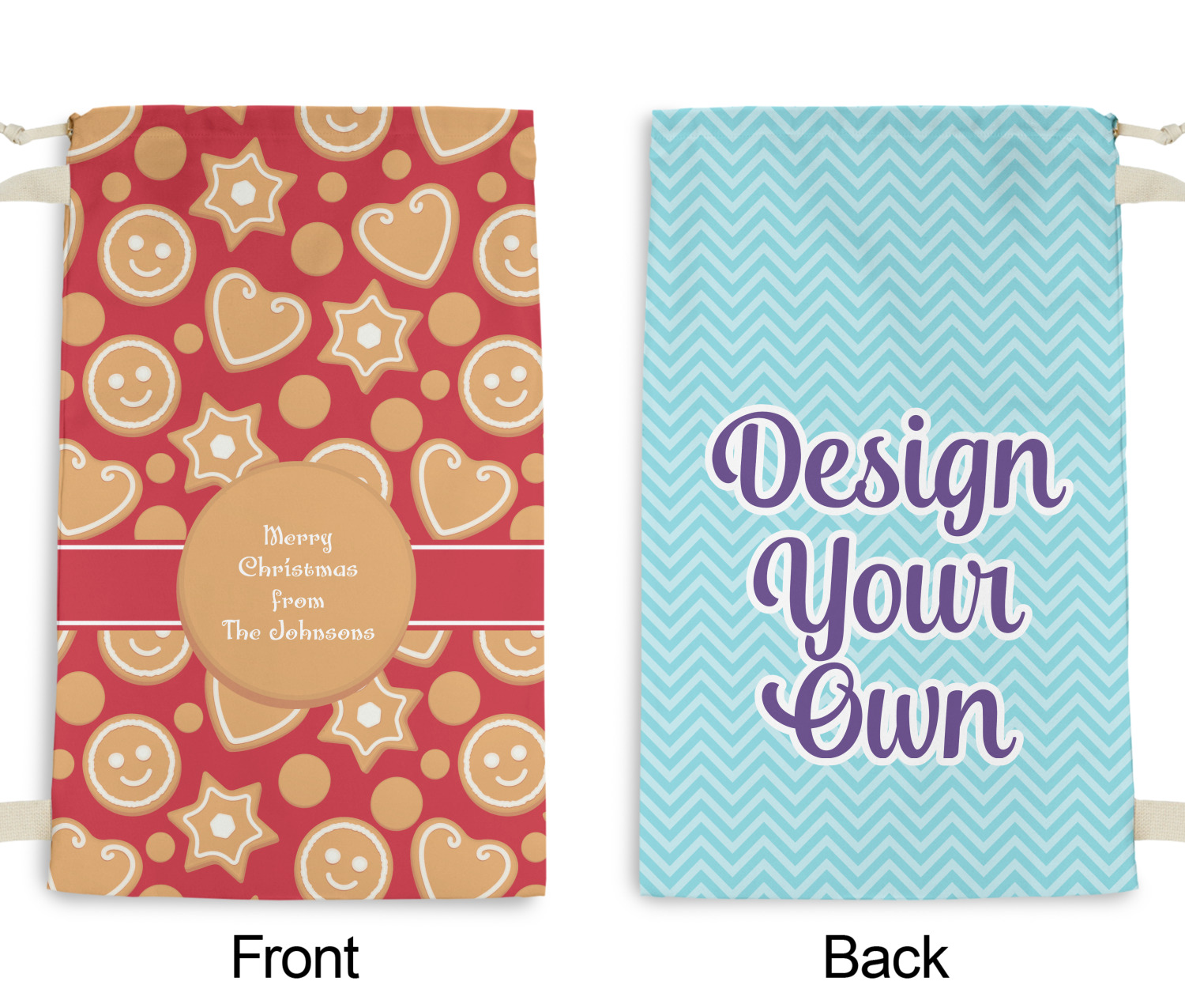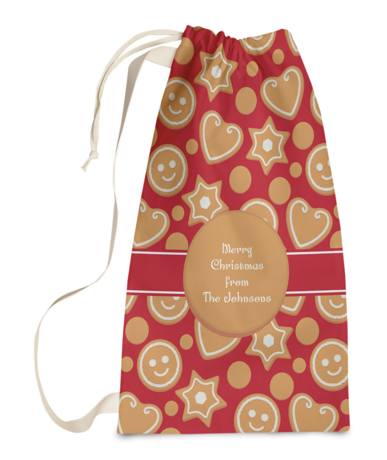 Carry your laundry in style with these customized laundry bags. Available in two sizes, featuring a natural colored woven strap and a cinch cord, these bags hold a lot of clothes or anything else you want to fit in them.