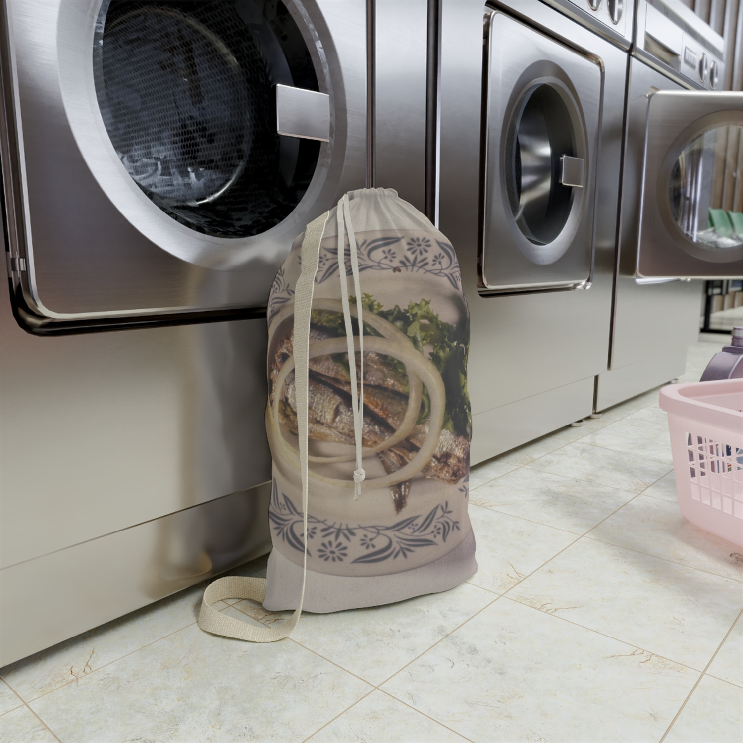 Carry your laundry in style with these customized laundry bags. Available in two sizes, featuring a natural colored woven strap and a cinch cord, these bags hold a lot of clothes or anything else you want to fit in them.