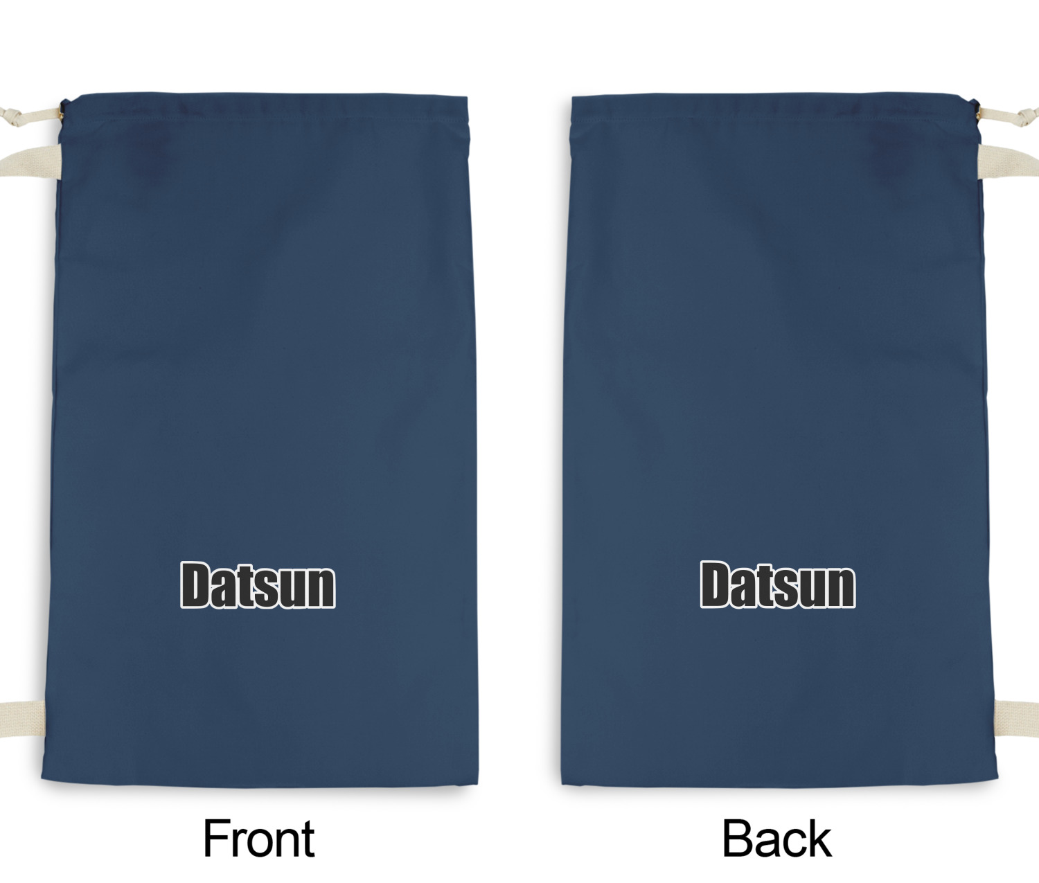 Carry your laundry in style with these customized laundry bags. Available in two sizes, featuring a natural colored woven strap and a cinch cord, these bags hold a lot of clothes or anything else you want to fit in them.