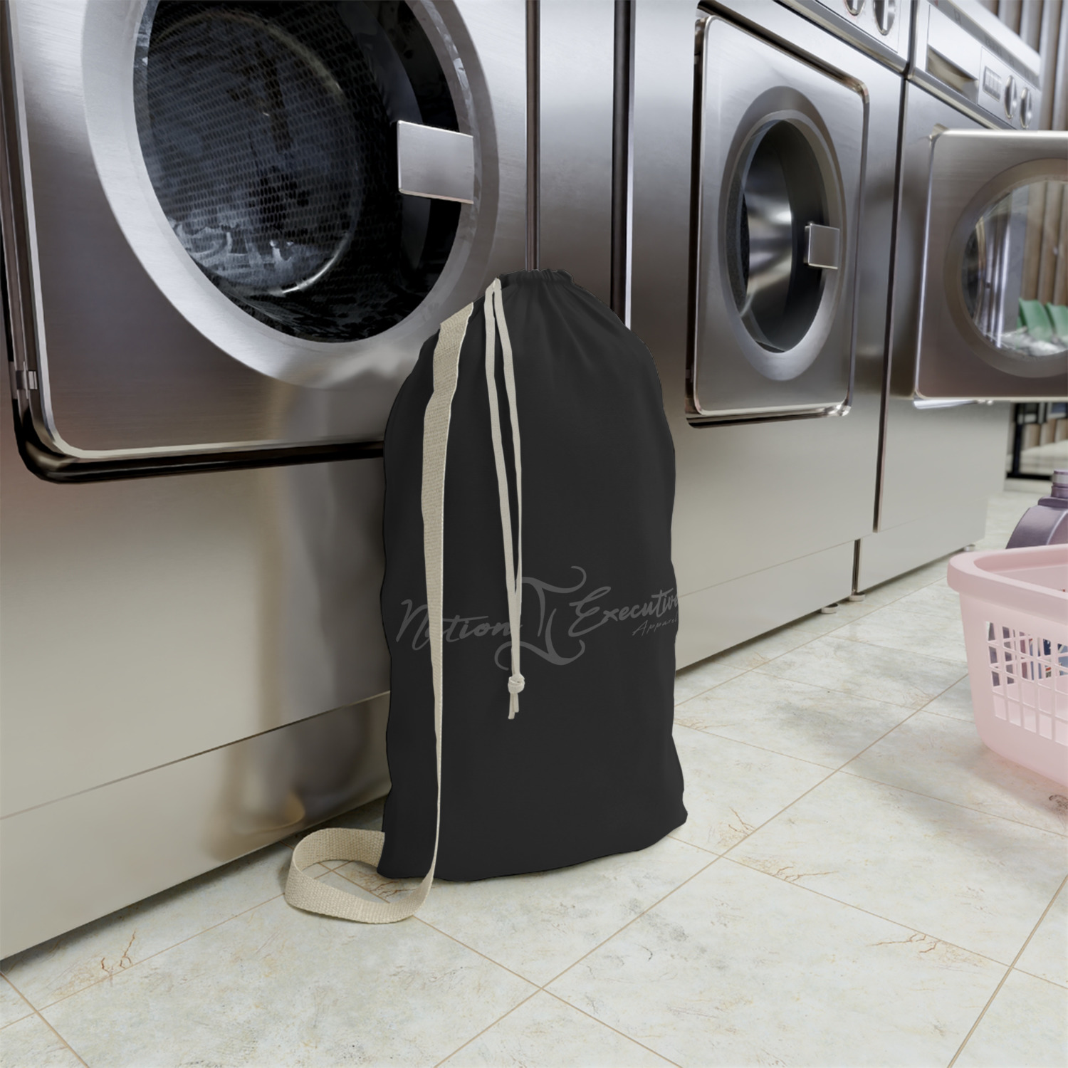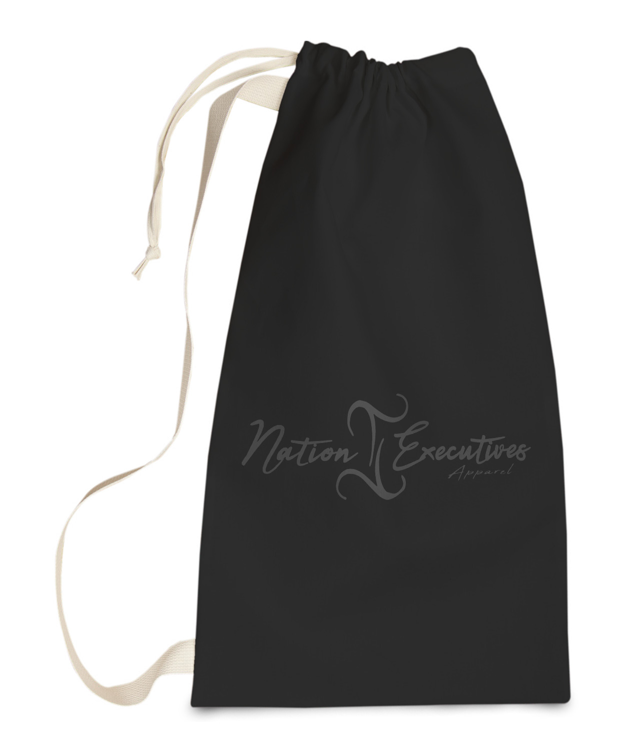 Carry your laundry in style with these customized laundry bags. Available in two sizes, featuring a natural colored woven strap and a cinch cord, these bags hold a lot of clothes or anything else you want to fit in them.