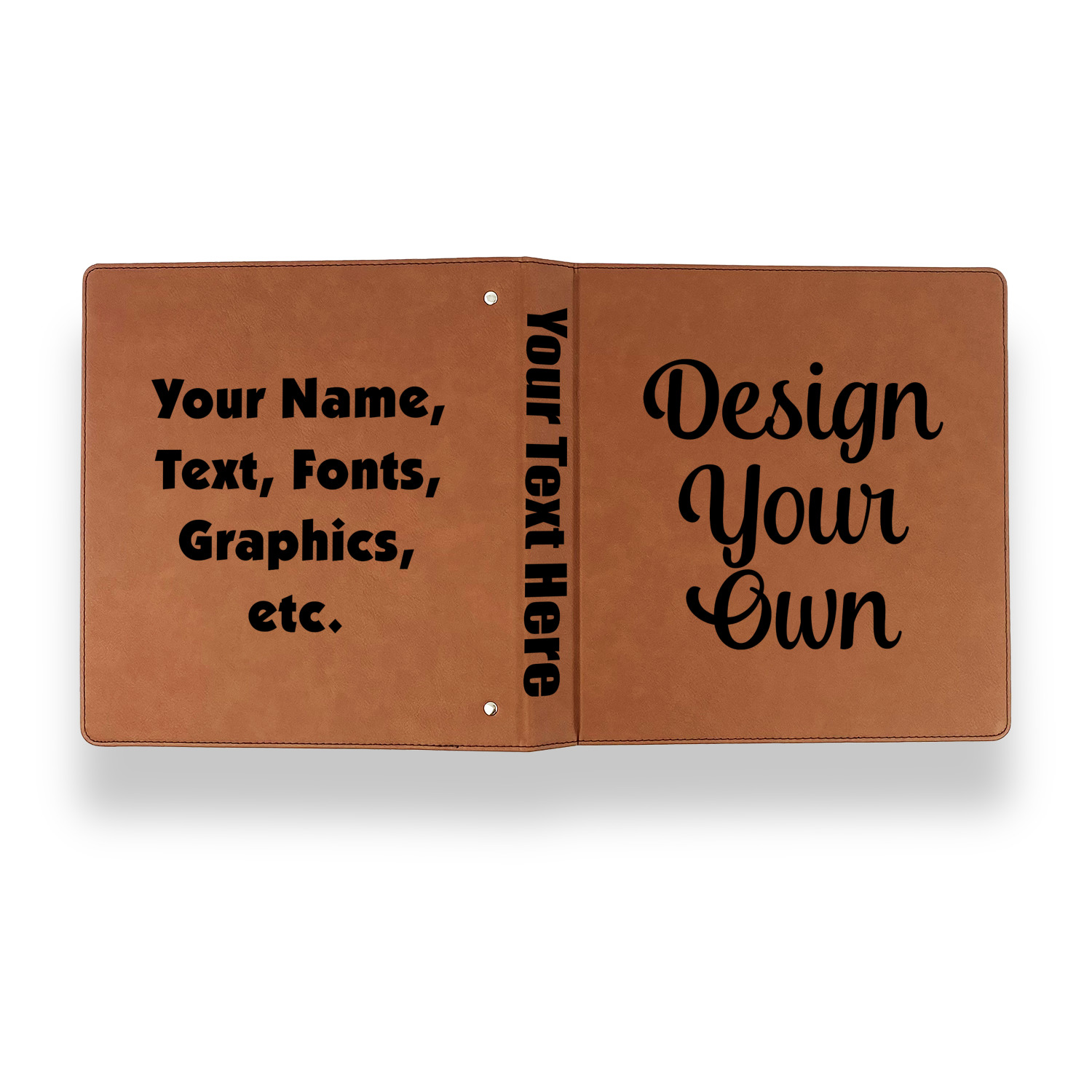 Made from a high quality faux leather covering, these binders are laser engrave with your choice of personalization. The 1" d-rings inside hold up to 175 sheets of standard 8.5" x 11" US Letter or notebook paper or 8.27" x 11.69" A4 size paper.