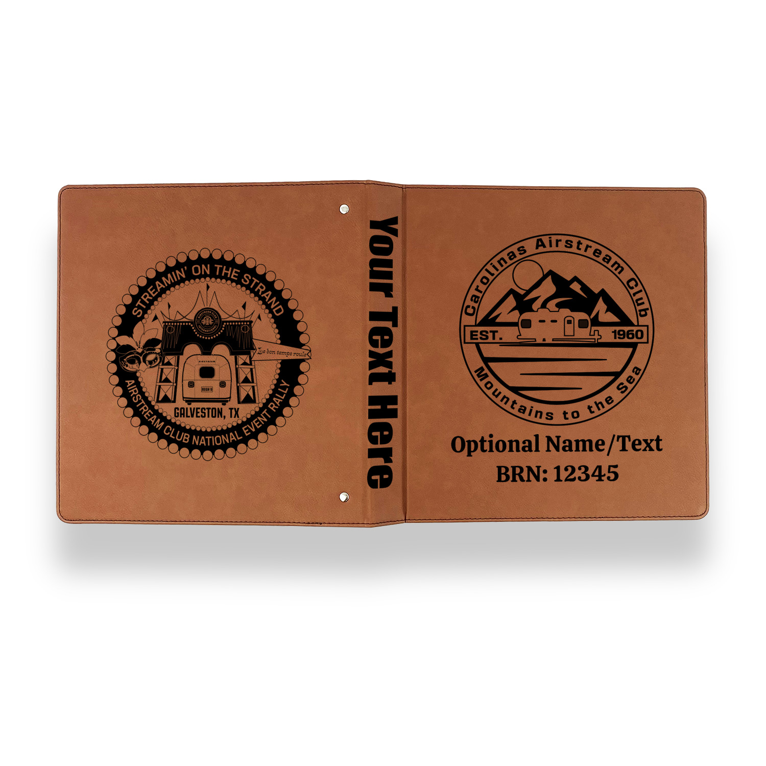 Carolina Airstream Club Design on Custom Leather Binder - 1" - Rawhide