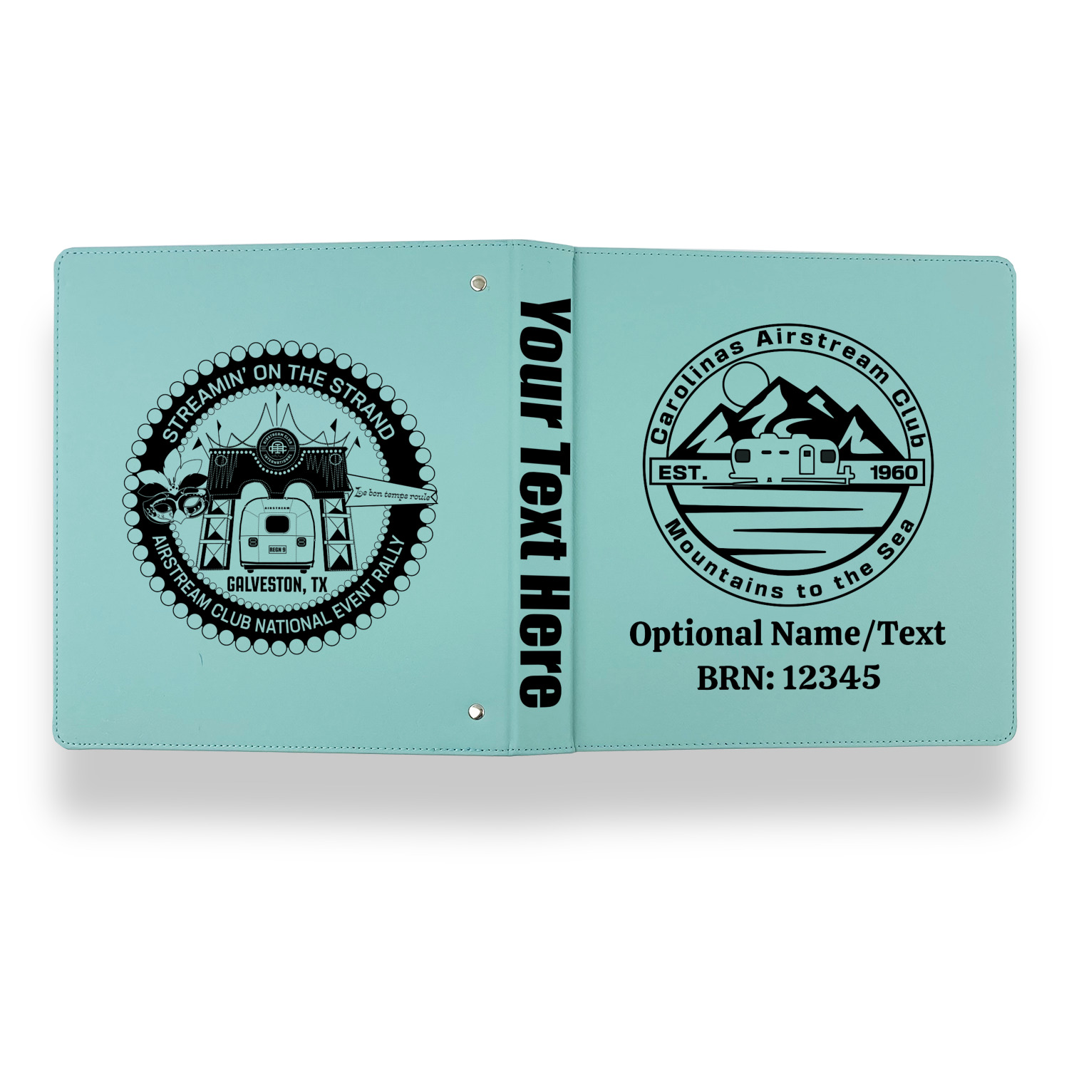 Carolina Airstream Club Design on Custom Leather Binder - 1" - Teal