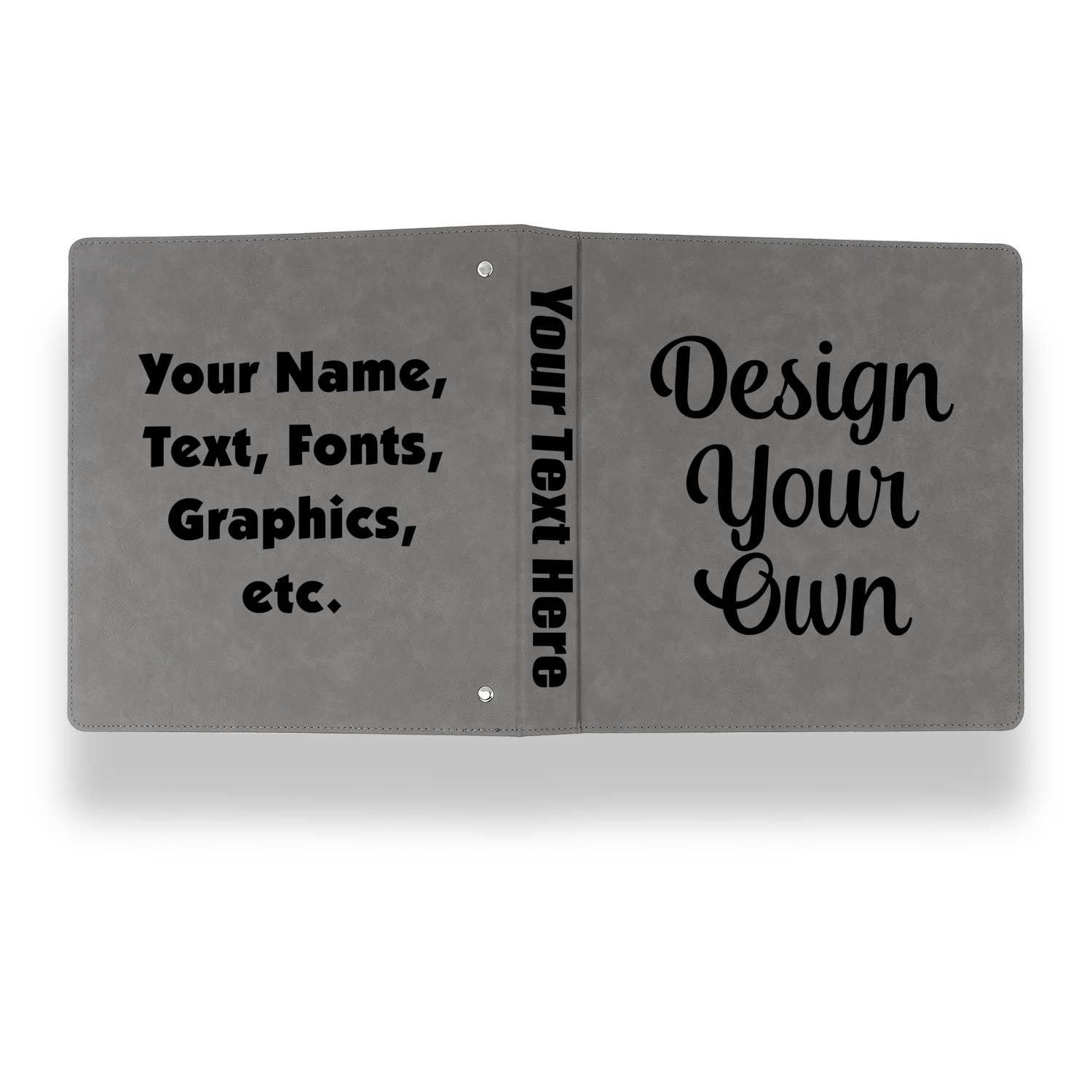 Here at YouCustomizeIt we allow you to truly customize these binders by giving you the ability to customize all 3 areas on the outside of these faux leather binders. For example, you can add your company logo to the front cover, project name on the spine and project picture on the back cover. Or if it is for school use our school mascot graphic on the front cover, the school subject on the spine and students name on the back cover. The possibilities are endless!
