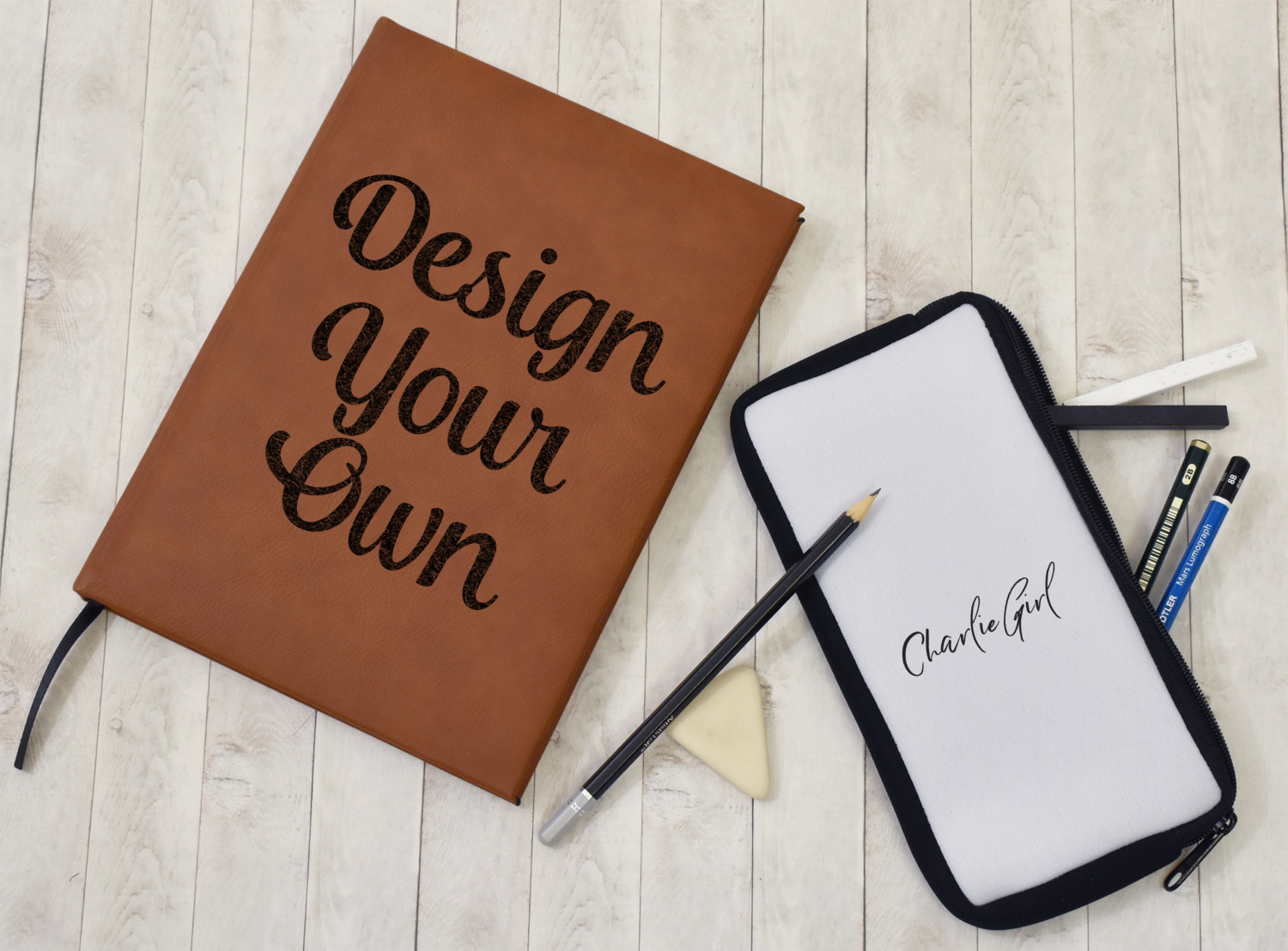 You may enjoy browsing our Office & Desk section. We have an excellent selection of customizable binders & valet trays