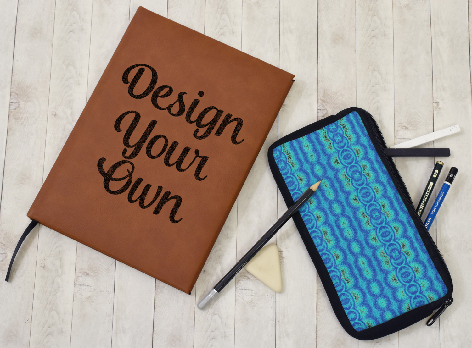 The faux leather covers are a rich cognac / rawhide color and can be customized with your design. From a simple name or monogram or a logo to a detailed mandala - the choice for customization & personalization is truly yours. Customize one of our designs or upload your own.