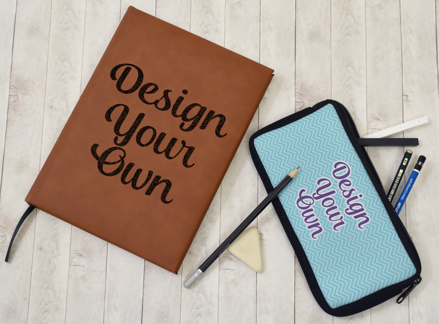 The faux leather covers are a rich cognac / rawhide color and can be customized with your design. From a simple name or monogram or a logo to a detailed mandala - the choice for customization & personalization is truly yours. Customize one of our designs or upload your own.