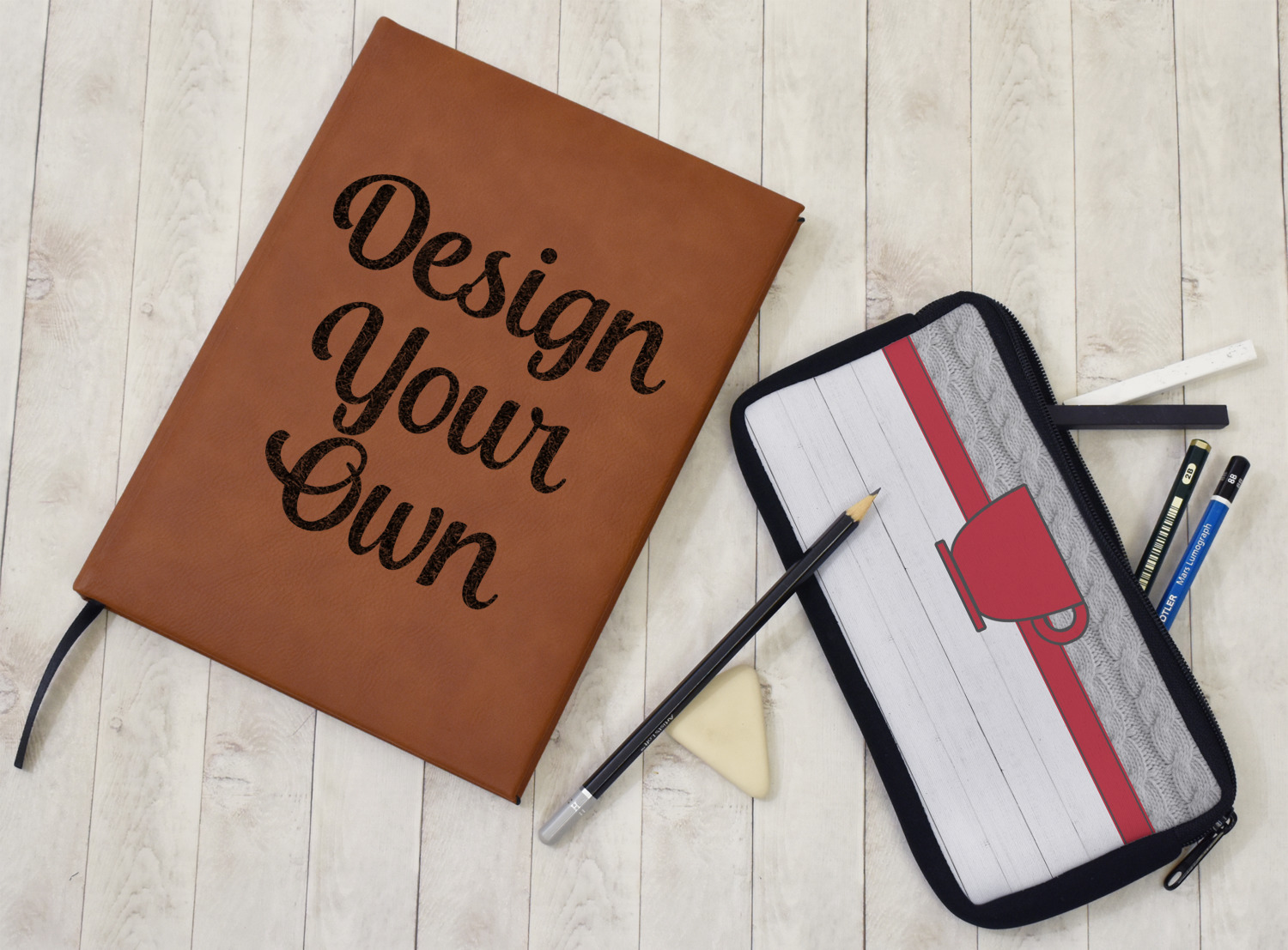 The faux leather covers are a rich cognac / rawhide color and can be customized with your design. From a simple name or monogram or a logo to a detailed mandala - the choice for customization & personalization is truly yours. Customize one of our designs or upload your own.