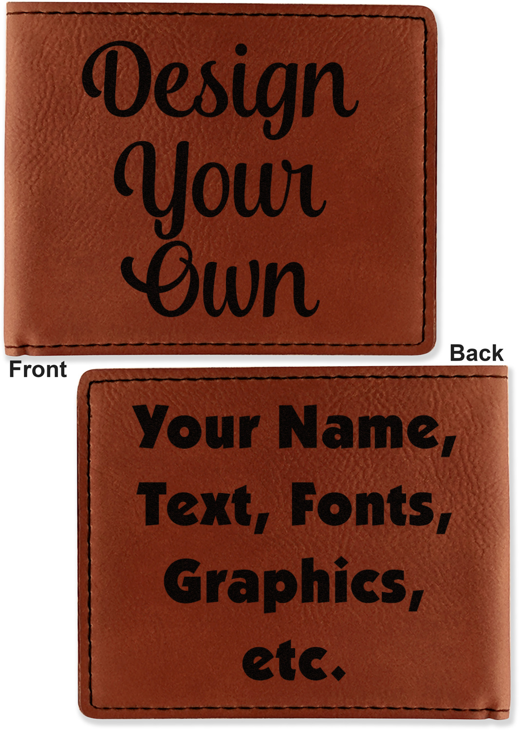 Your bifold wallet will be personalized by laser engraving, which will be a black color on the wallet. Choose a graphic, text, or monogram to personalize your wallet. There are thousands of choices in our design center.