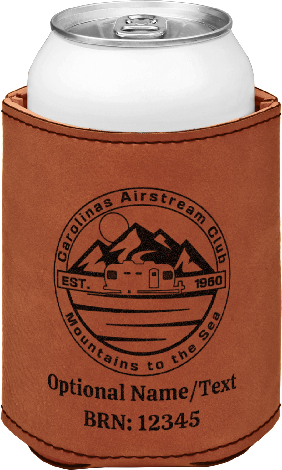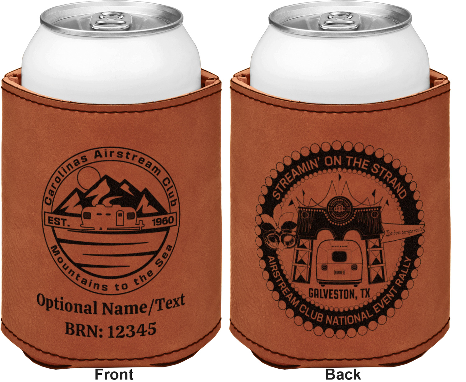 This can sleeve is made from a cognac-brown leatherette and stitched with a sturdy, black thread. A slim padding lines the inside of your can sleeve to allow for a better fit once your drink is inserted. The sleeve itself measures at 4 by 4.5 inches, allowing this custom can sleeve to accommodate most canned drinks. Your personalized design can be engraved on the front and back, or solely the front. When laser-engraved, your design appears as a black coloration which contrasts the leatherette nicely.