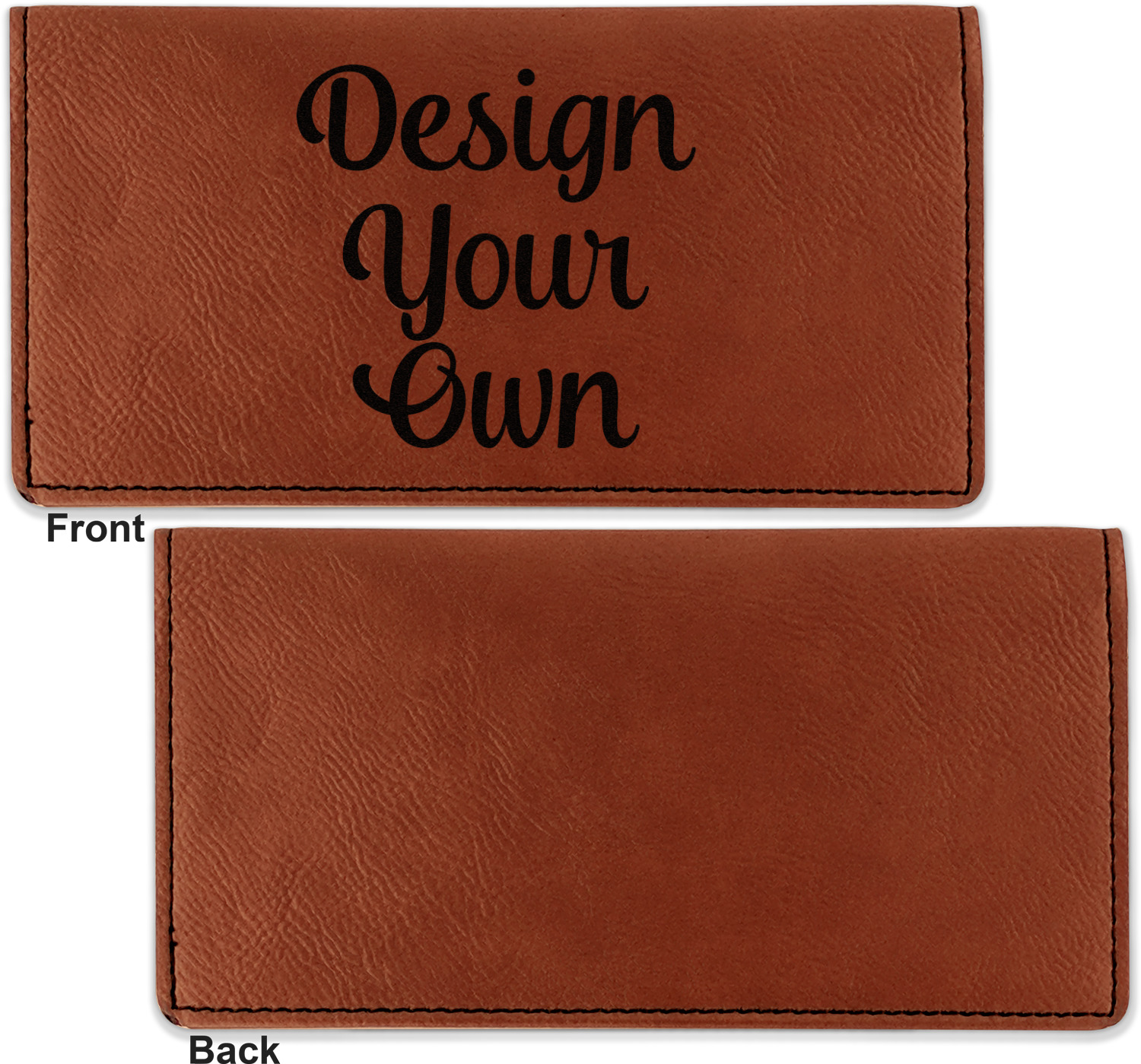 Go into our design center to start personalizing. Your checkbook cover will be laser engraved, making the graphic or text a black color. Choose a fun saying, monogram, or font to go on your checkbook cover. You have the opportunity to do it double or single sided.