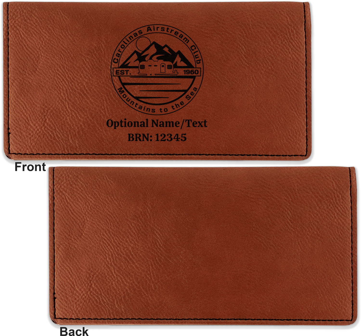 Go into our design center to start personalizing. Your checkbook cover will be laser engraved, making the graphic or text a black color. Choose a fun saying, monogram, or font to go on your checkbook cover. You have the opportunity to do it double or single sided.