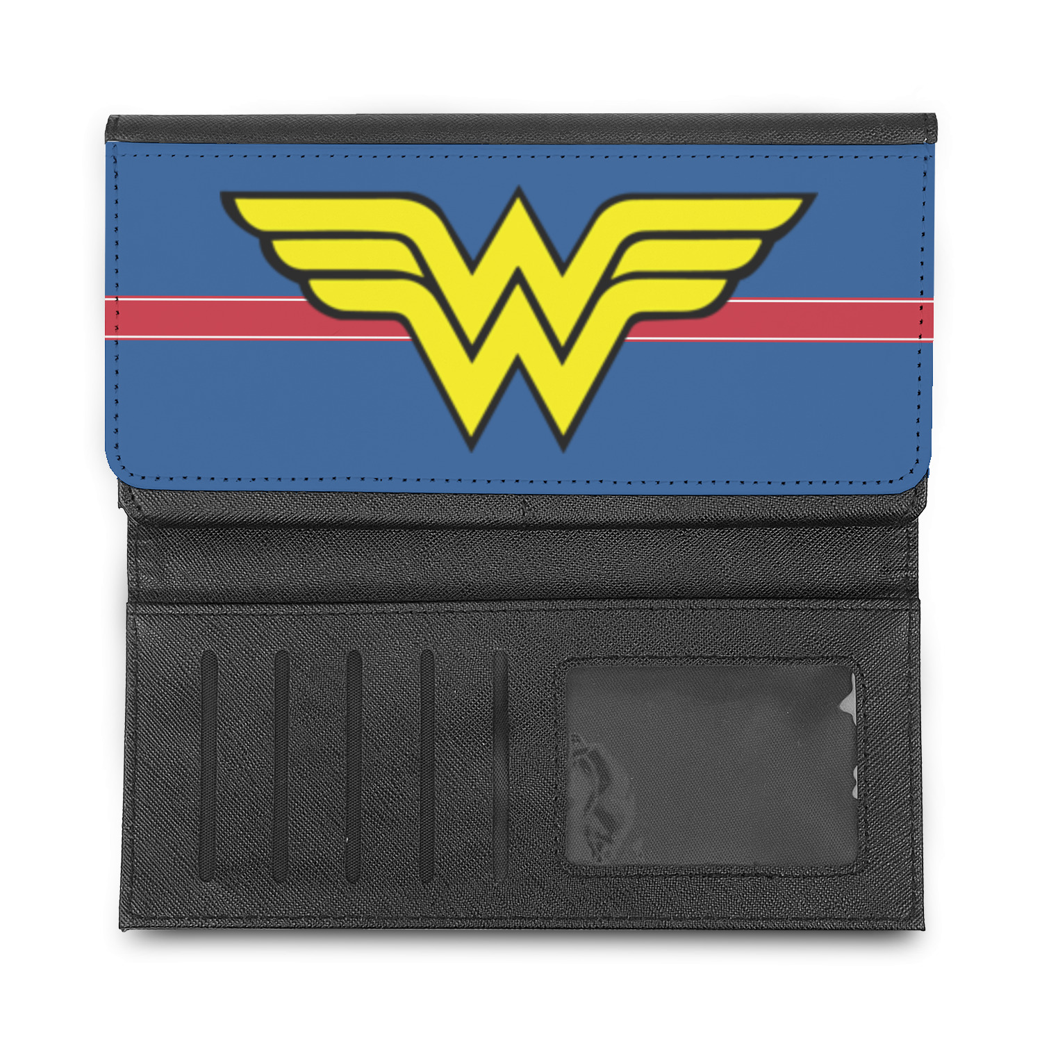 These beautiful wallets are a trifold design. The wallet is made of textured leatherette. The front section has a secure magnetic snap. The front flap is personalized with the artwork of your choice to make this wallet uniquely yours.