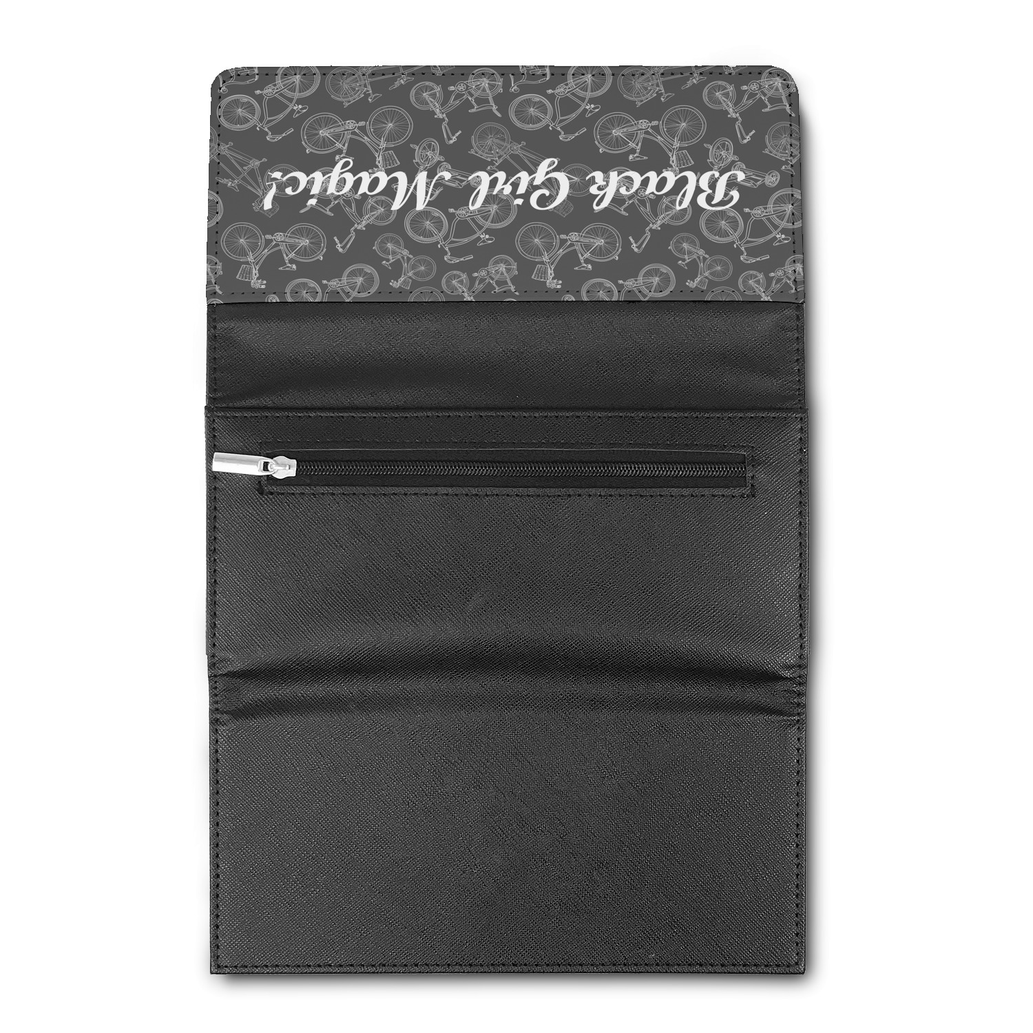 These beautiful wallets are a trifold design. The wallet is made of textured leatherette. The front section has a secure magnetic snap. The front flap is personalized with the artwork of your choice to make this wallet uniquely yours.