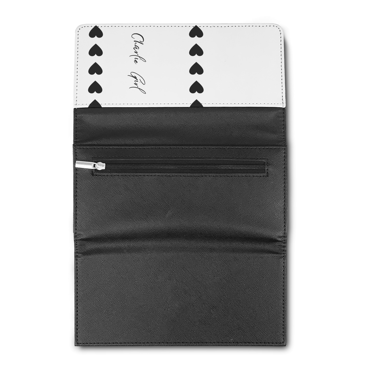 These beautiful wallets are a trifold design. The wallet is made of textured leatherette. The front section has a secure magnetic snap. The front flap is personalized with the artwork of your choice to make this wallet uniquely yours.