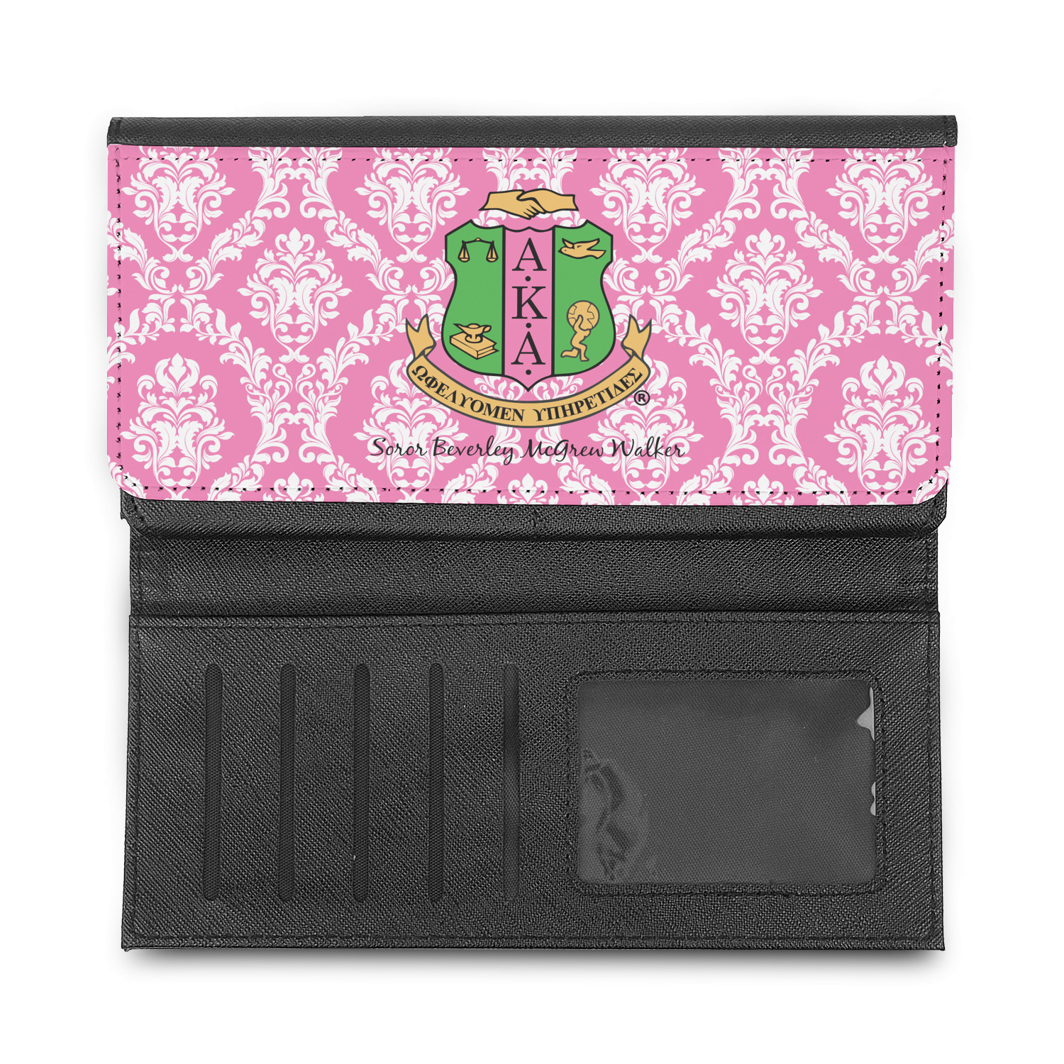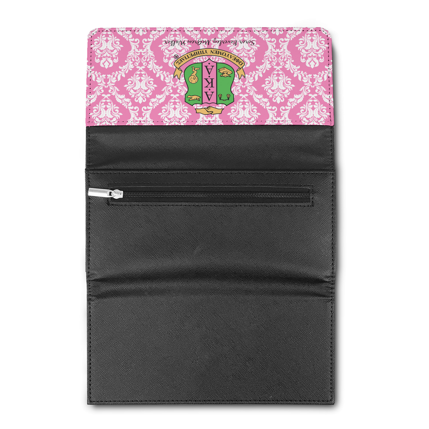 These leatherette ladies wallets can be customized with any one of our patterns (many patterns are available in multiple colors). Of course adding personalization (free) is your choice - you can include a monogram (interlocking is my favorite), a name, or one of our beautiful name and initial combinations.