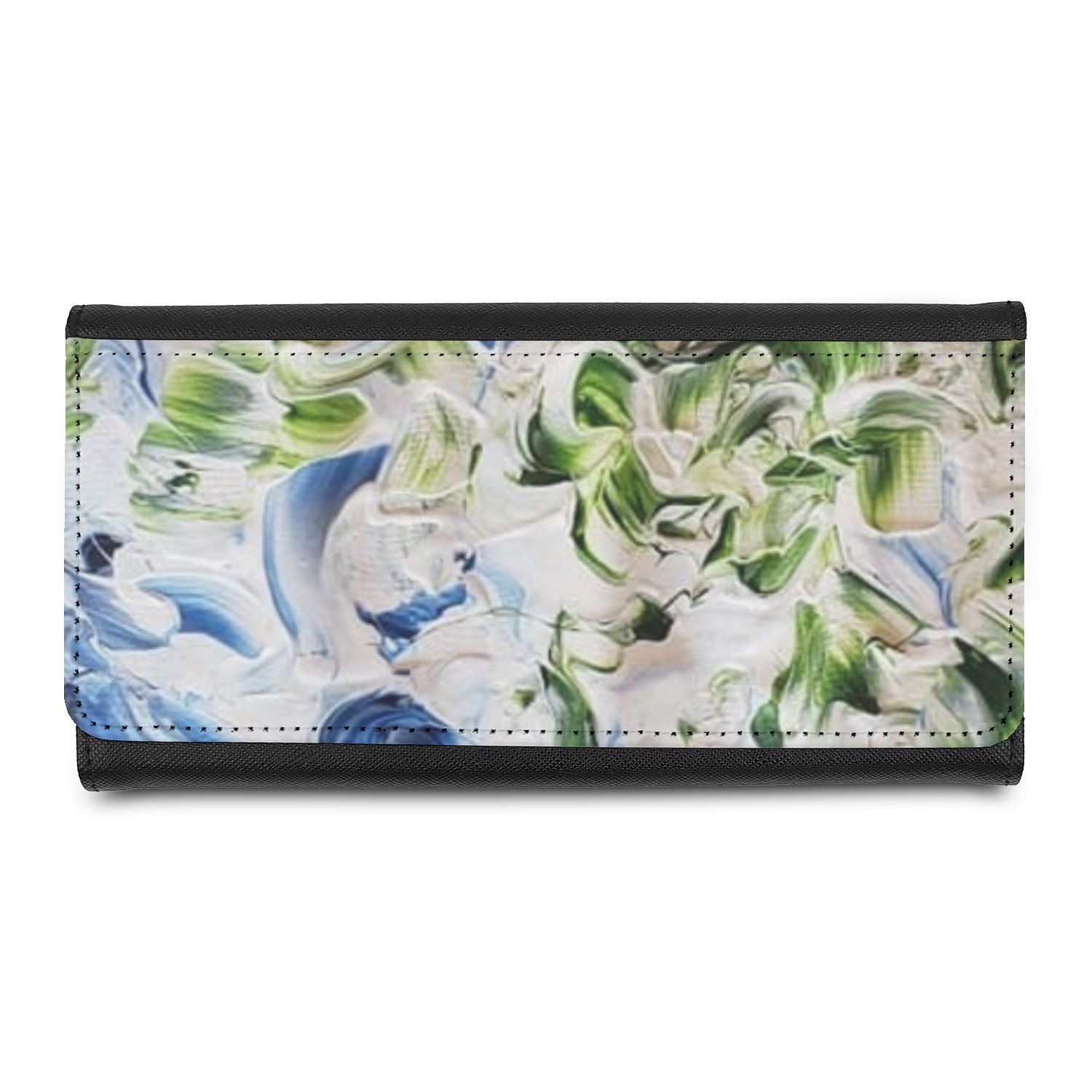 These beautiful wallets are a trifold design. The wallet is made of textured leatherette. The front section has a secure magnetic snap. The front flap is personalized with the artwork of your choice to make this wallet uniquely yours.
