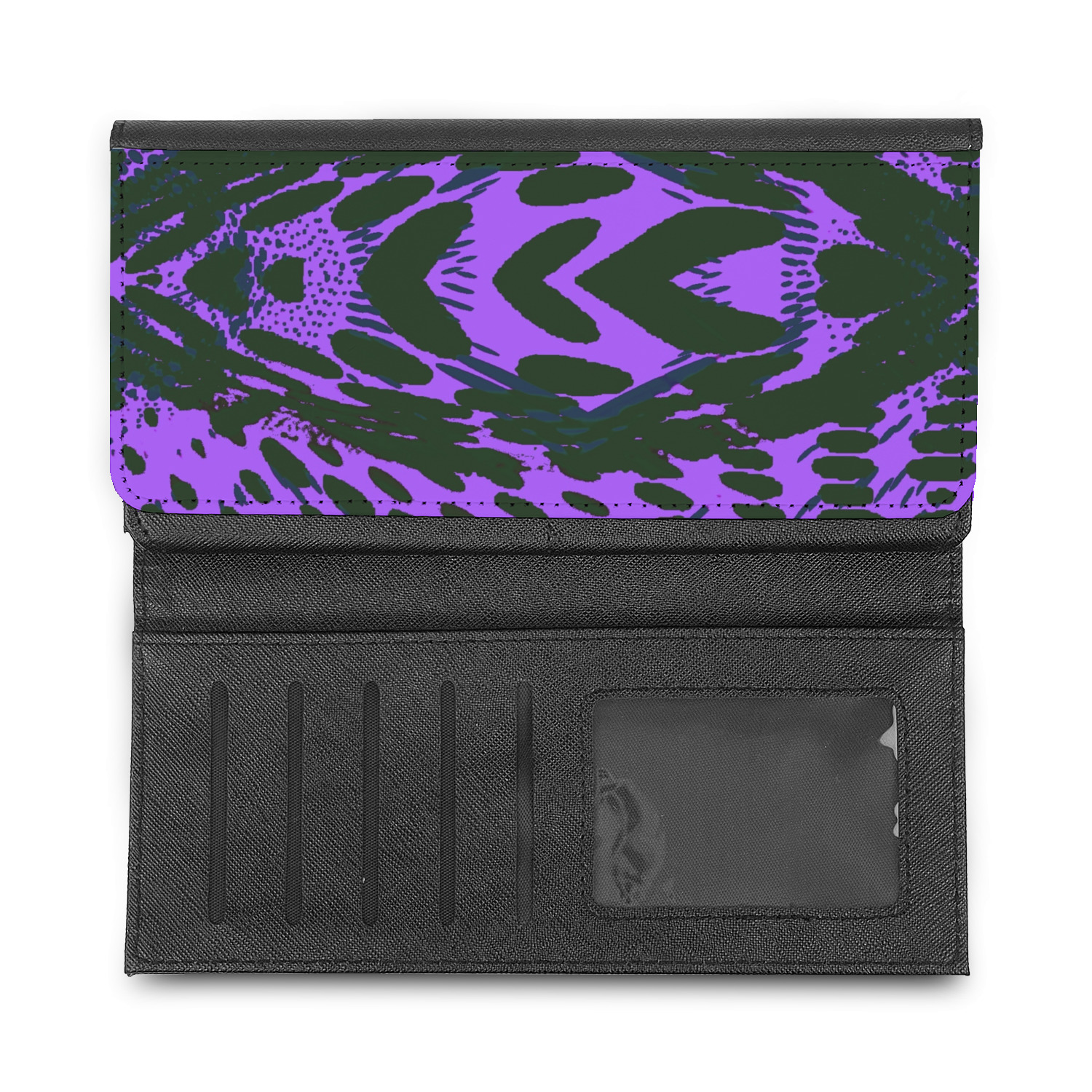 These beautiful wallets are a trifold design. The wallet is made of textured leatherette. The front section has a secure magnetic snap. The front flap is personalized with the artwork of your choice to make this wallet uniquely yours.