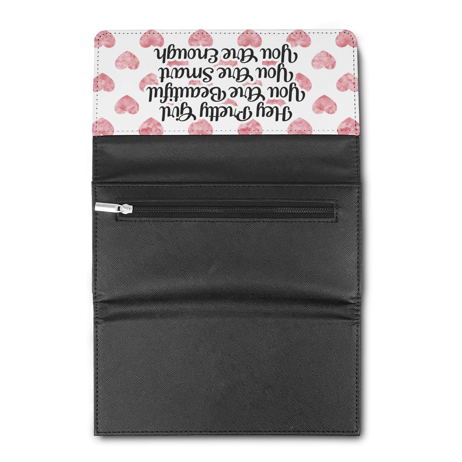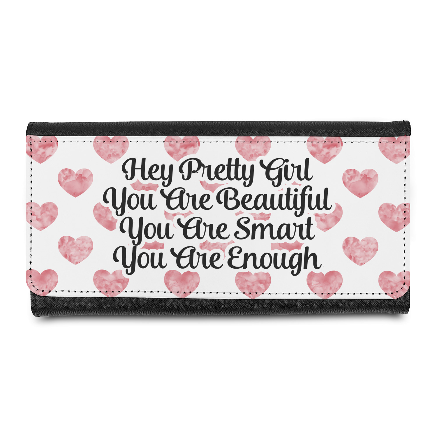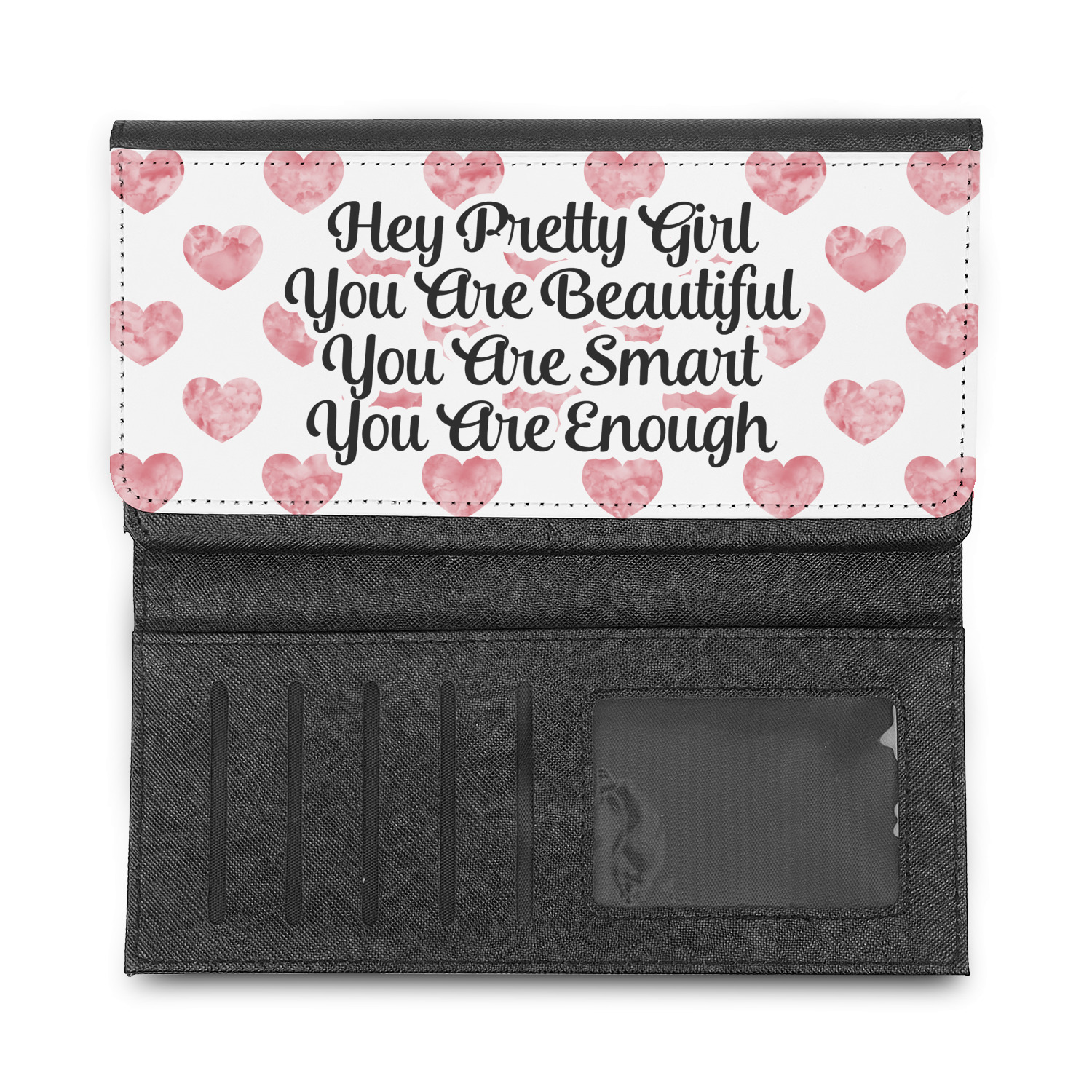 These beautiful wallets are a trifold design. The wallet is made of textured leatherette. The front section has a secure magnetic snap. The front flap is personalized with the artwork of your choice to make this wallet uniquely yours.