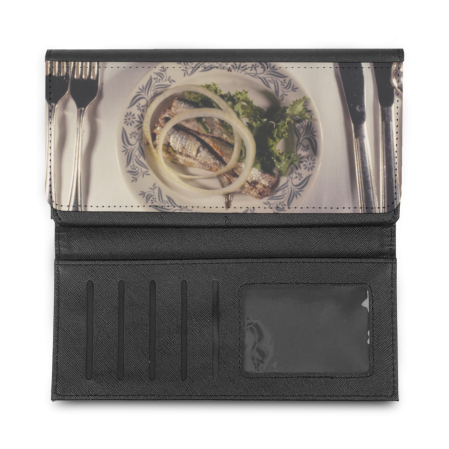 These beautiful wallets are a trifold design. The wallet is made of textured leatherette. The front section has a secure magnetic snap. The front flap is personalized with the artwork of your choice to make this wallet uniquely yours.