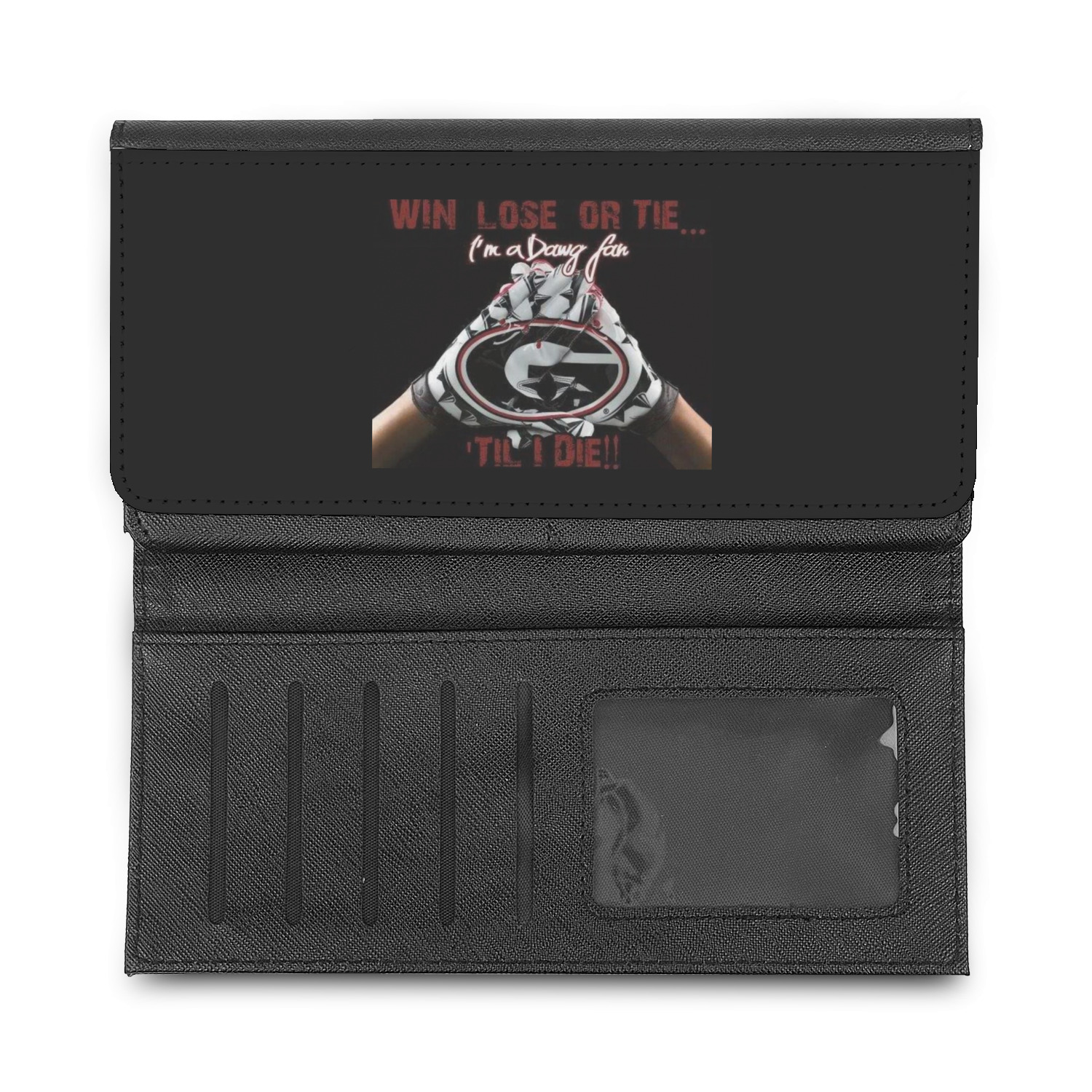 These beautiful wallets are a trifold design. The wallet is made of textured leatherette. The front section has a secure magnetic snap. The front flap is personalized with the artwork of your choice to make this wallet uniquely yours.