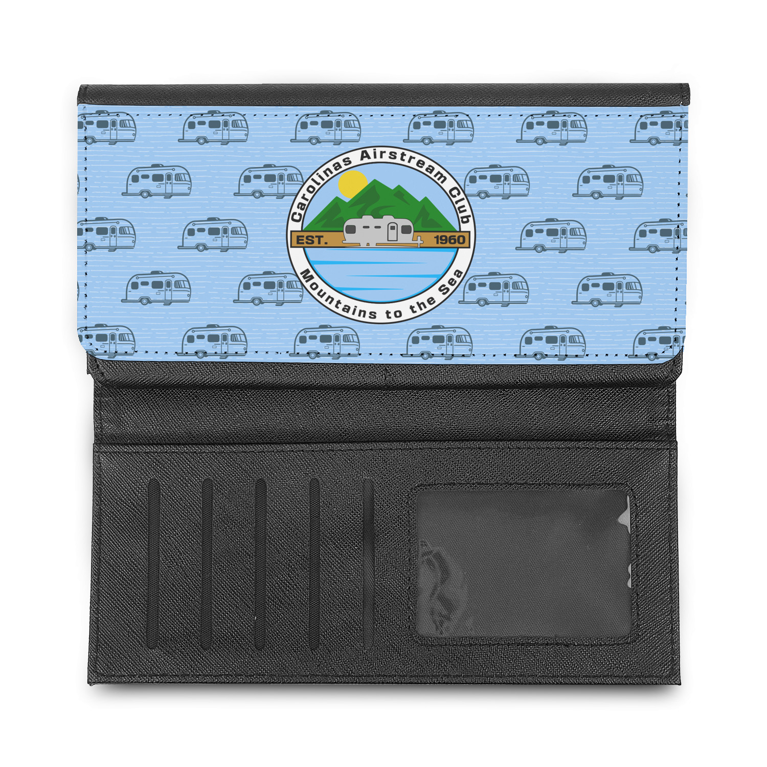 These beautiful wallets are a trifold design. The wallet is made of textured leatherette. The front section has a secure magnetic snap. The front flap is personalized with the artwork of your choice to make this wallet uniquely yours.